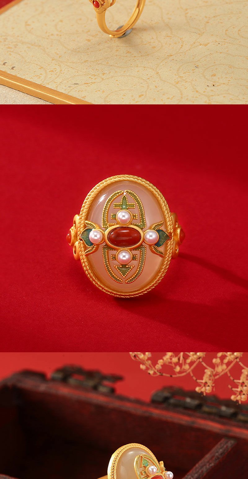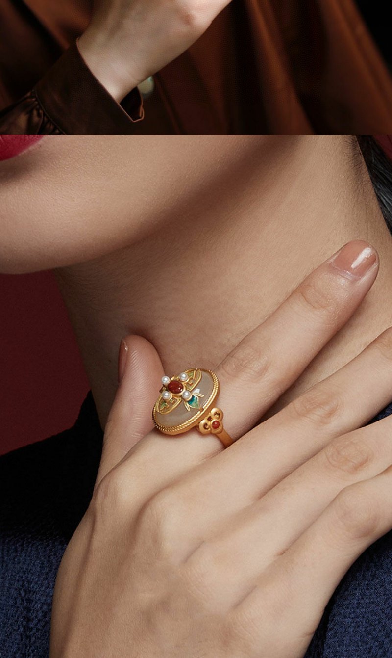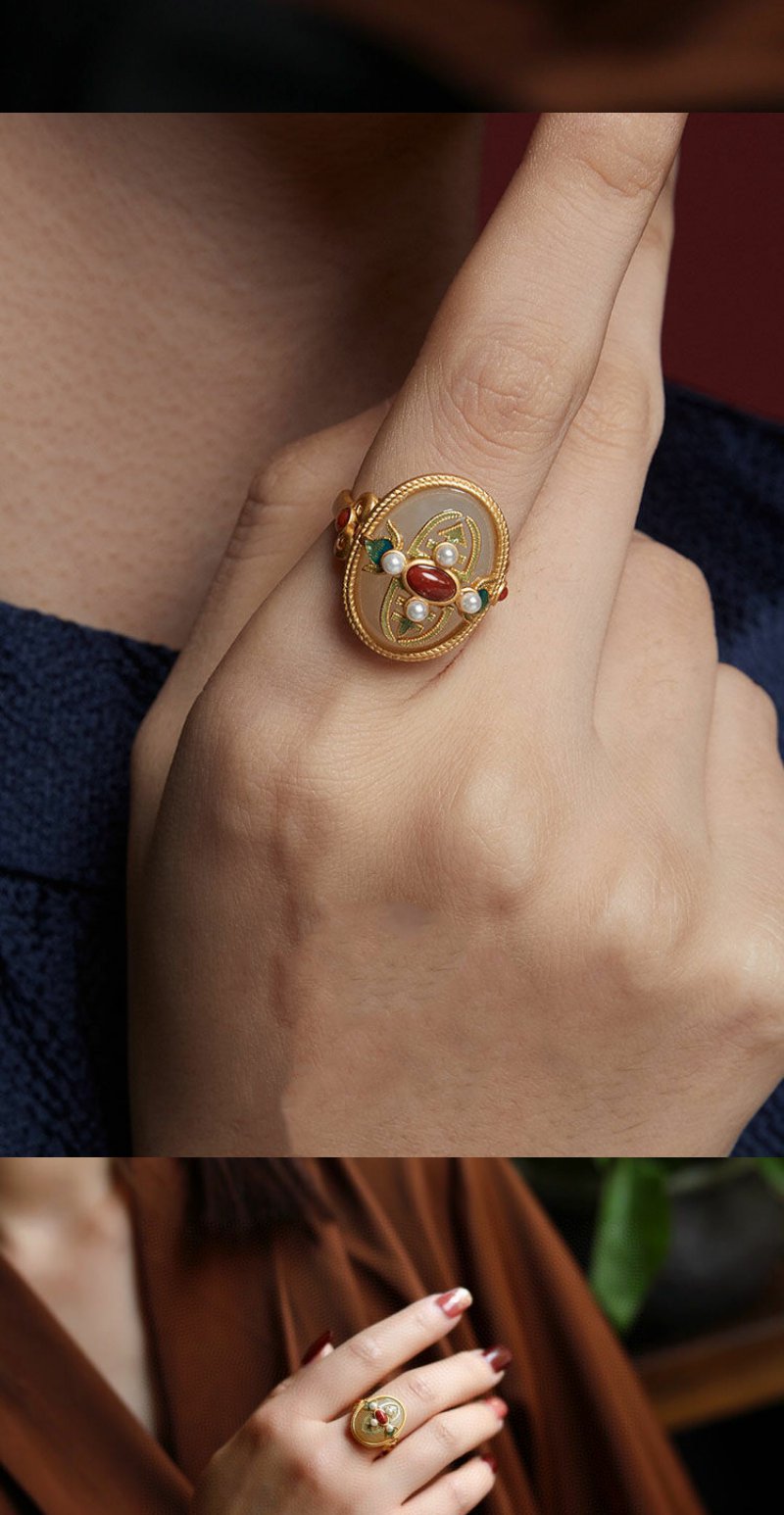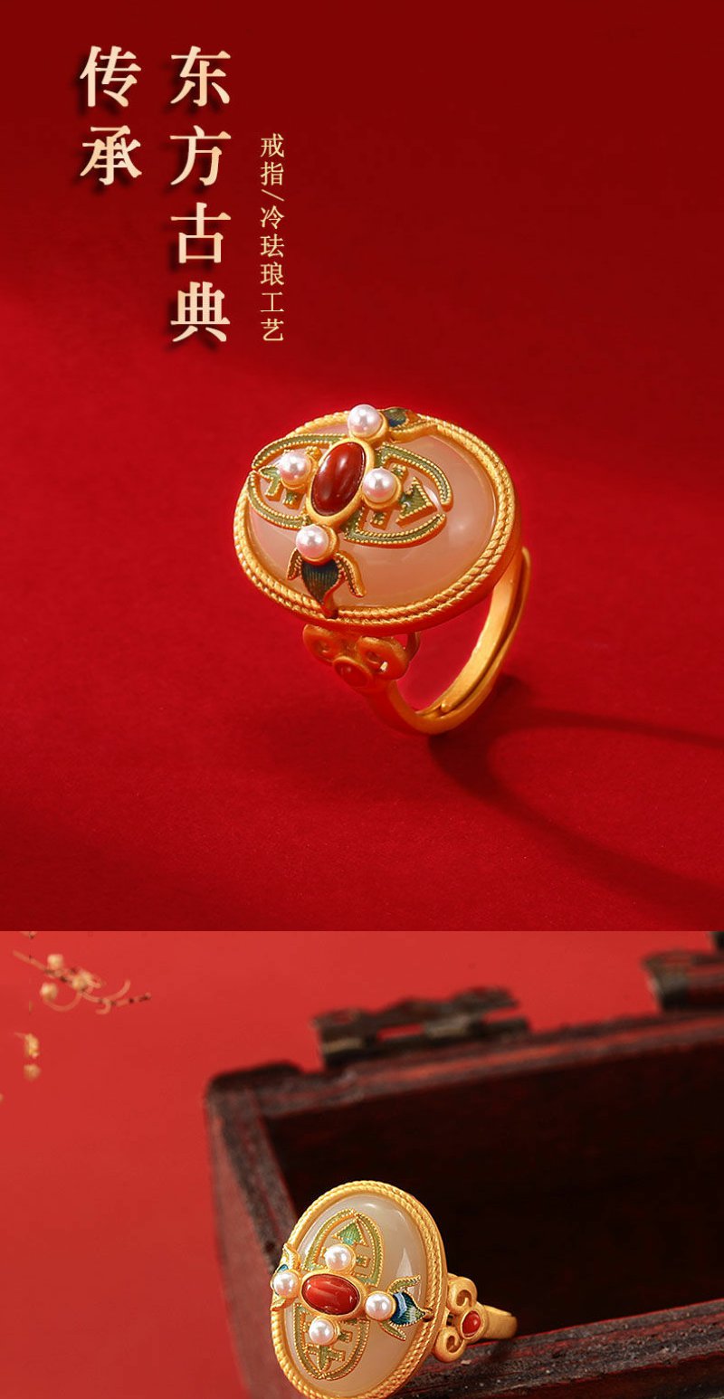 宫典彩绘珐琅天然石戒指银手饰贵气复古典雅指环