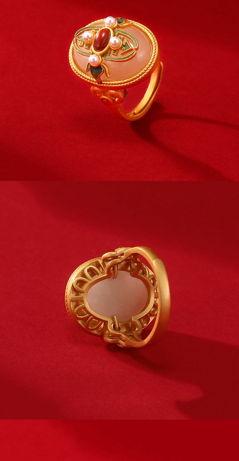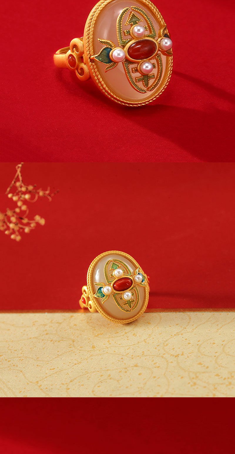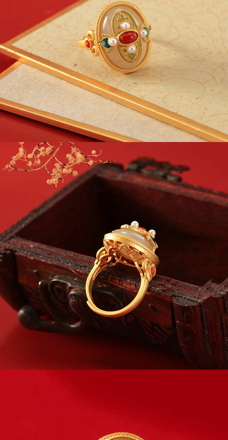宫典彩绘珐琅天然石戒指银手饰贵气复古典雅指环