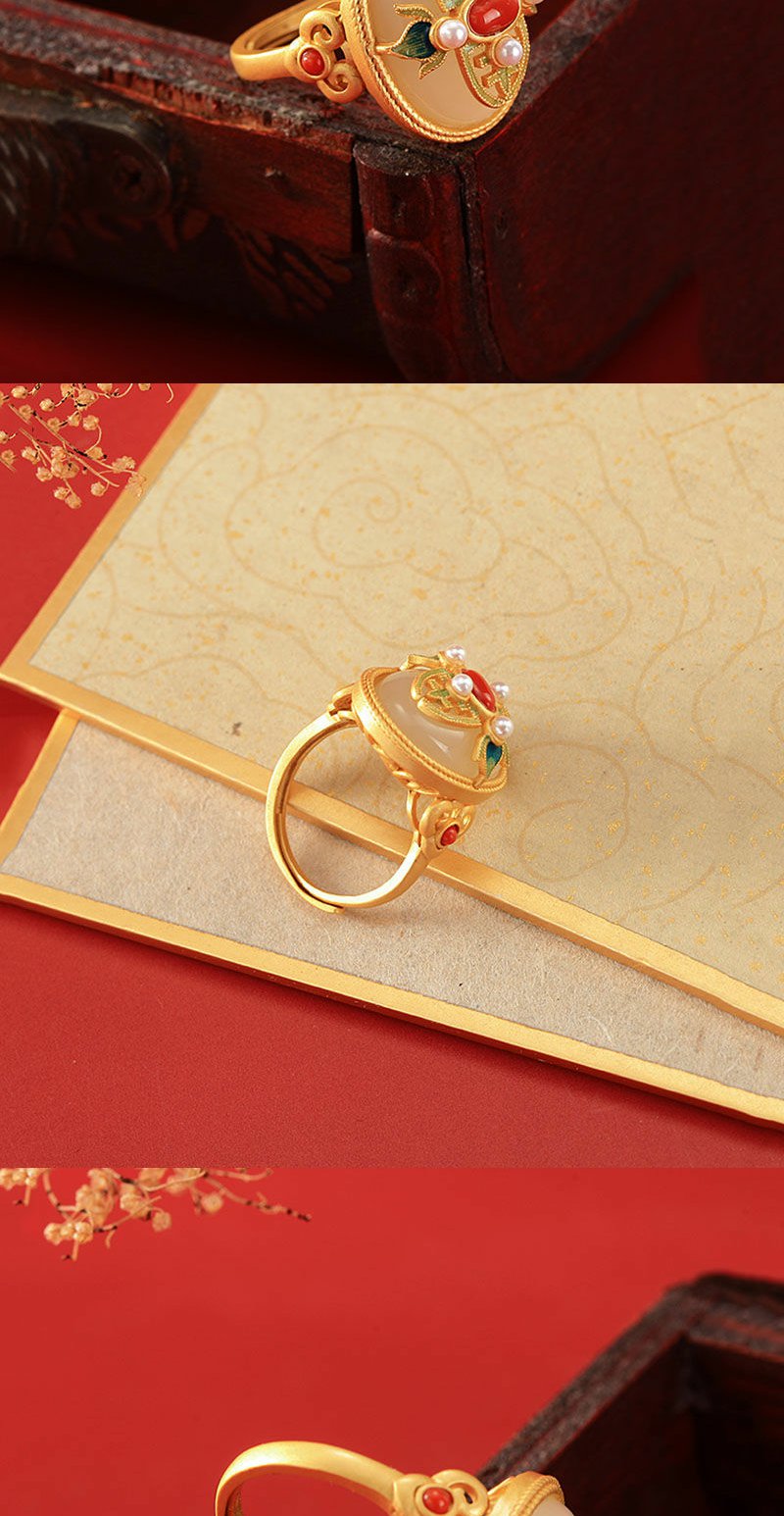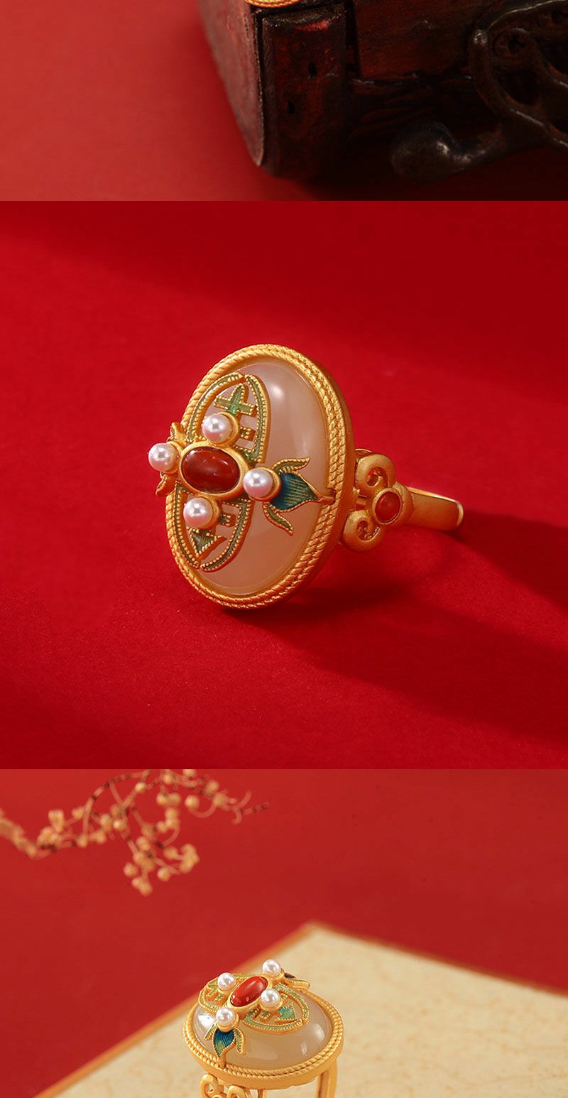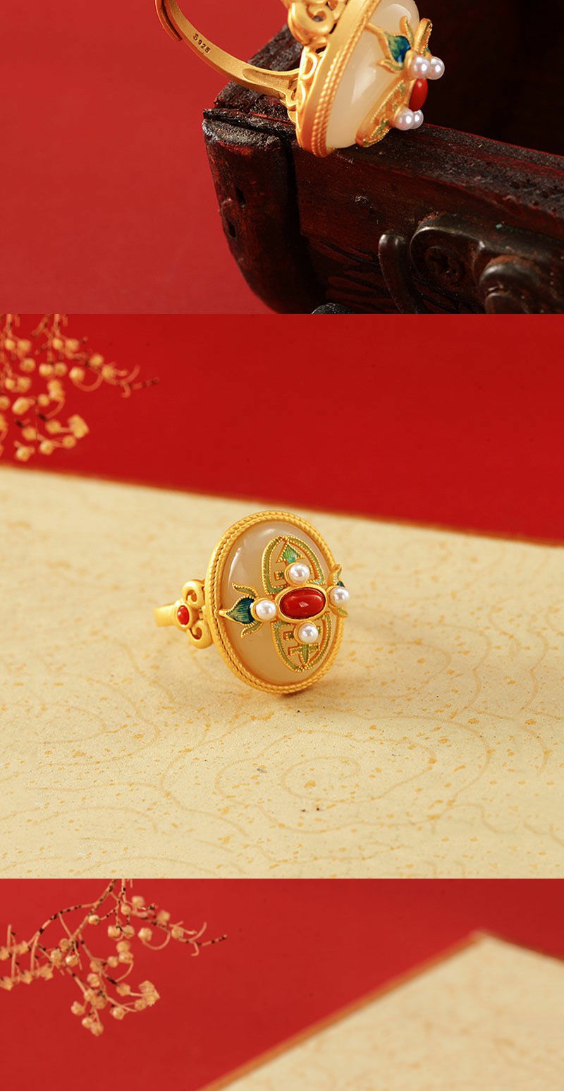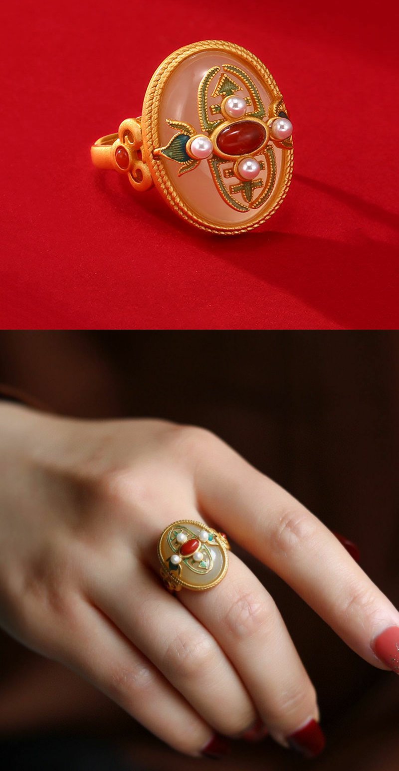宫典彩绘珐琅天然石戒指银手饰贵气复古典雅指环