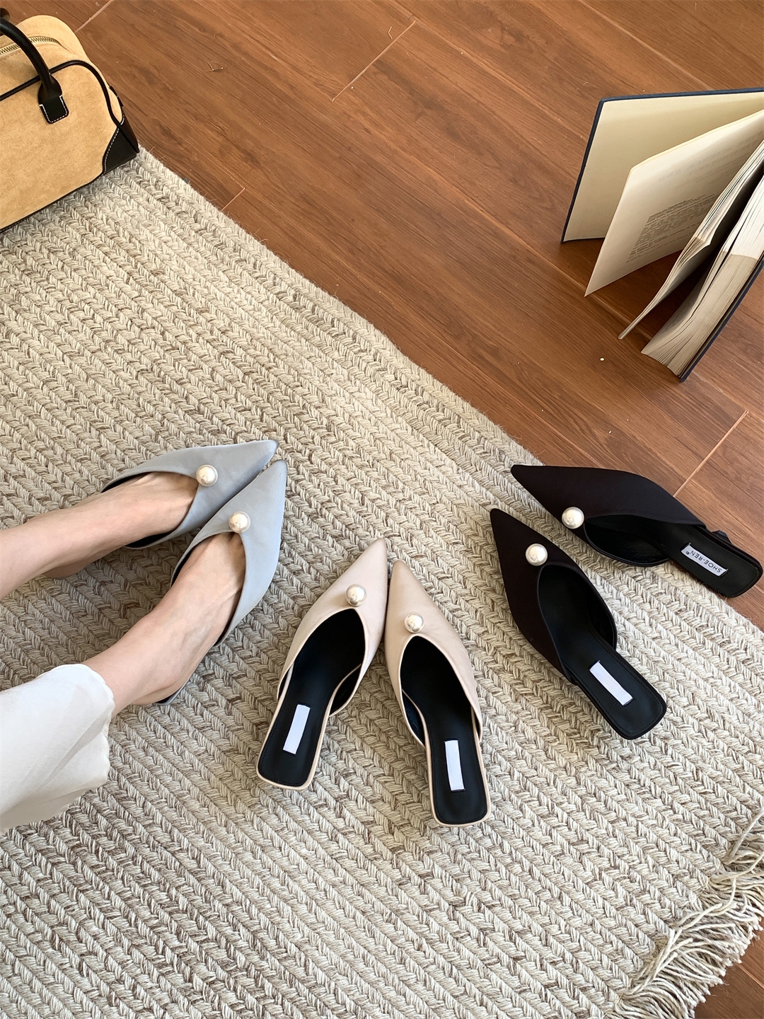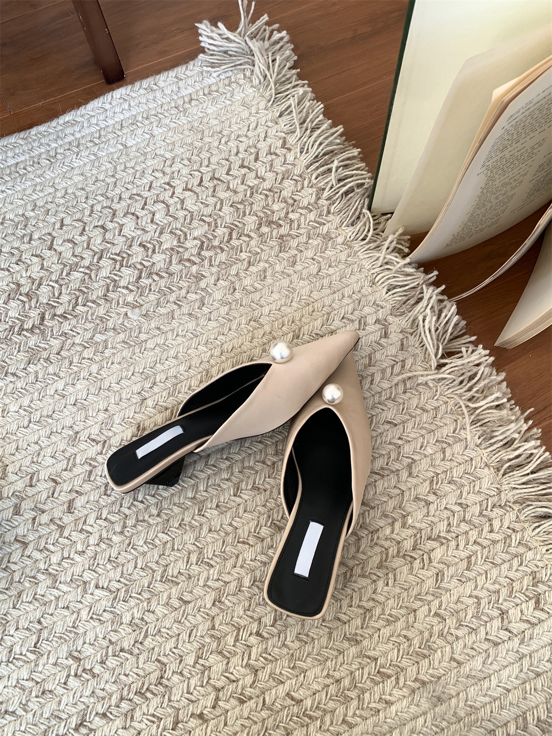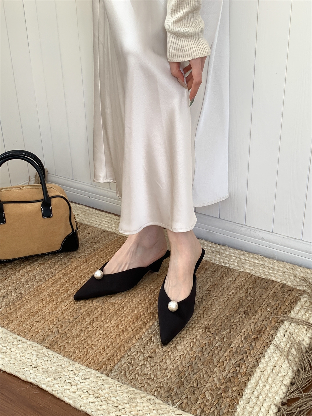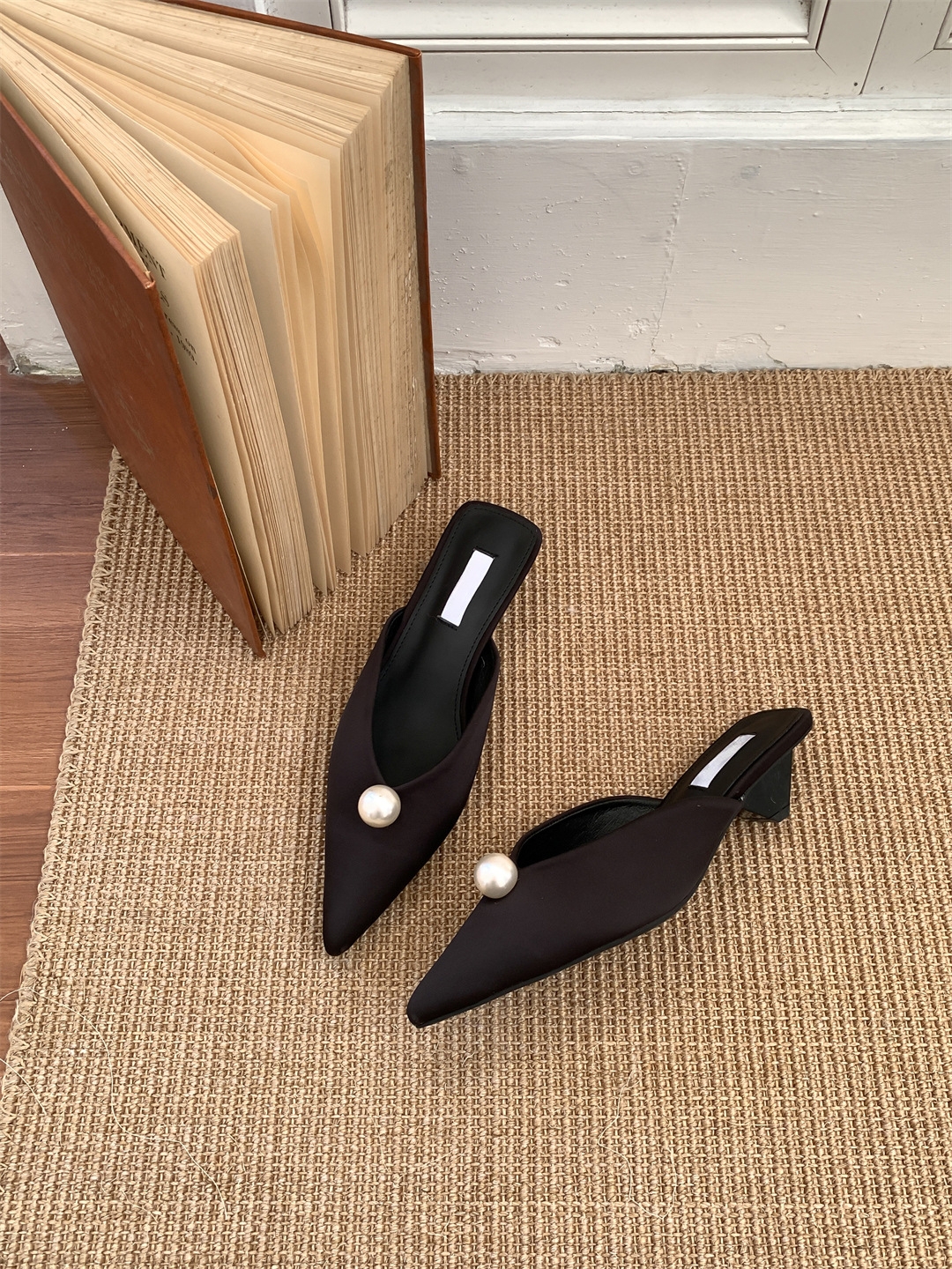 鞋码很正,若脚很胖建议大一码。鞋面是进口醋酸缎面,有密度有厚度很结实,珍珠是施华洛大颗有光泽感,鞋型超新颖,显得脚瘦脚小。搭配牛仔裤,半裙都时髦洋气~尖头+珍珠更有女人味儿~