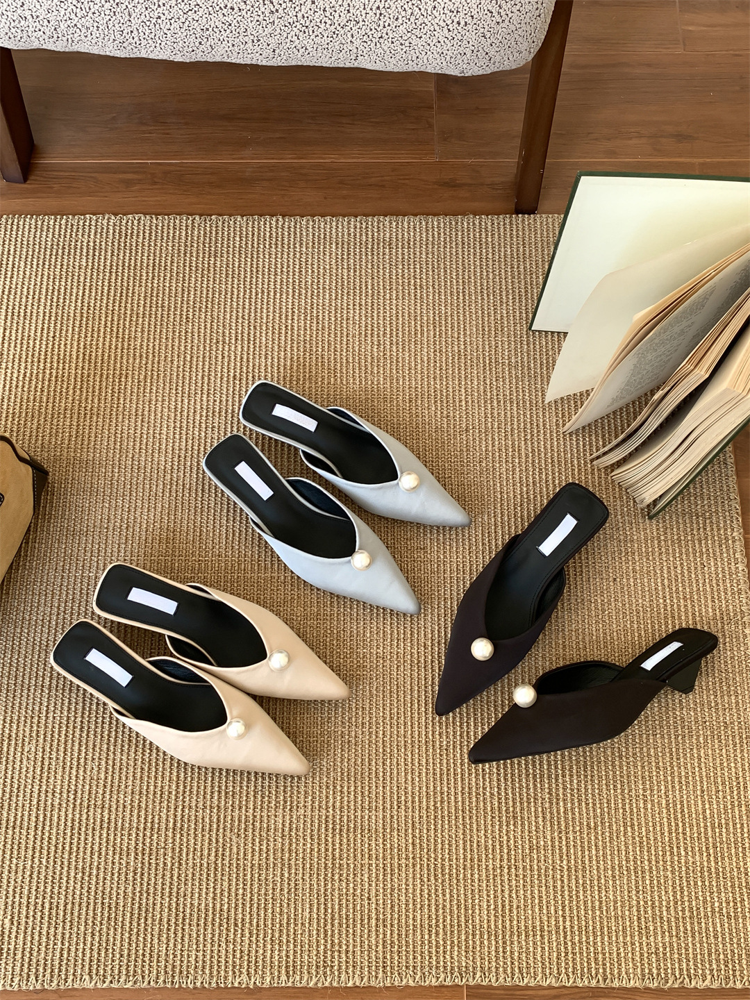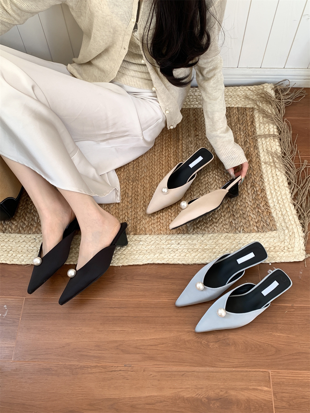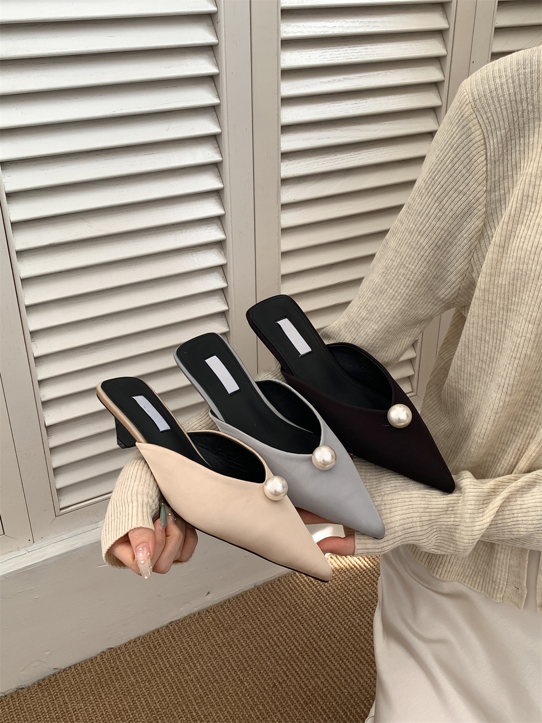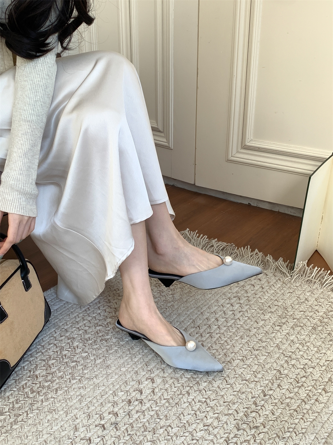 鞋码很正,若脚很胖建议大一码。鞋面是进口醋酸缎面,有密度有厚度很结实,珍珠是施华洛大颗有光泽感,鞋型超新颖,显得脚瘦脚小。搭配牛仔裤,半裙都时髦洋气~尖头+珍珠更有女人味儿~