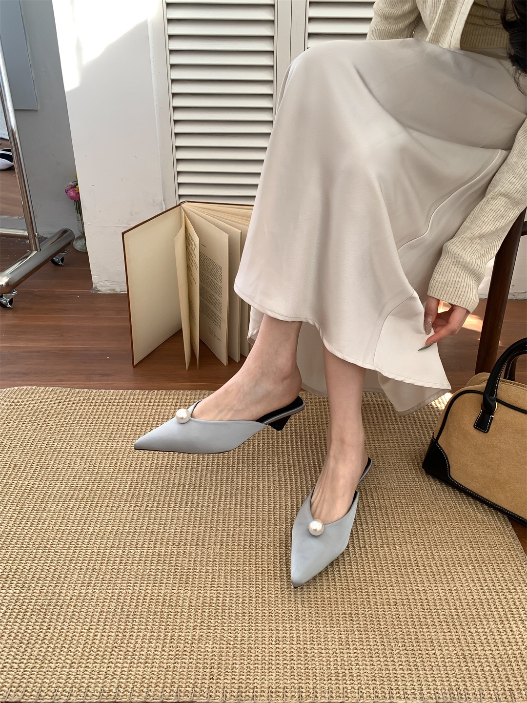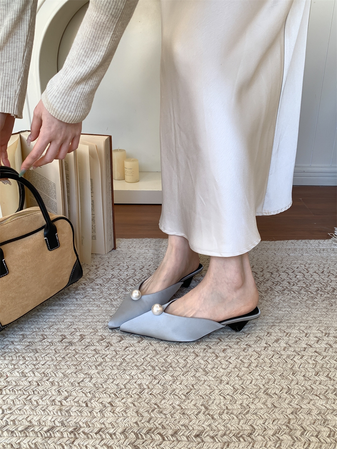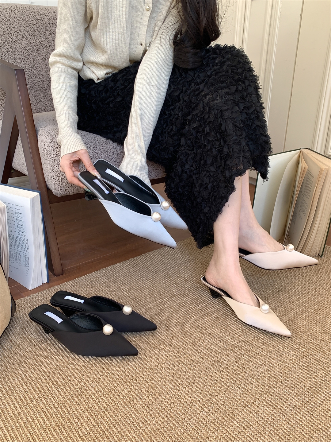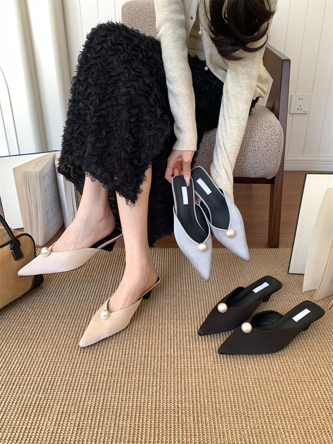 鞋码很正,若脚很胖建议大一码。鞋面是进口醋酸缎面,有密度有厚度很结实,珍珠是施华洛大颗有光泽感,鞋型超新颖,显得脚瘦脚小。搭配牛仔裤,半裙都时髦洋气~尖头+珍珠更有女人味儿~