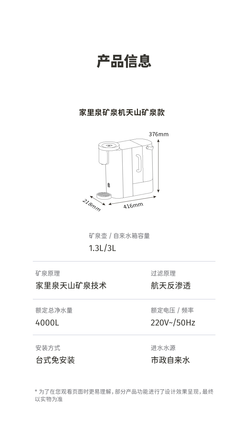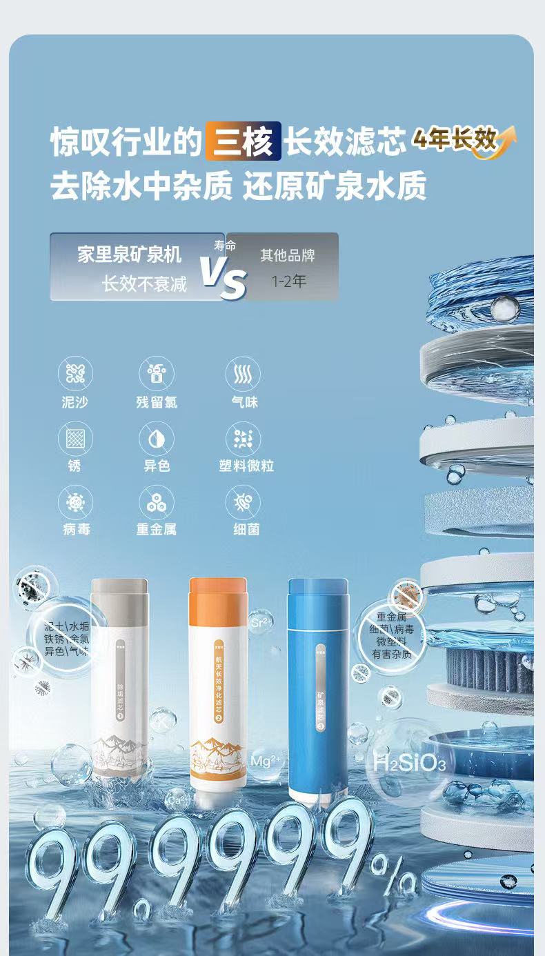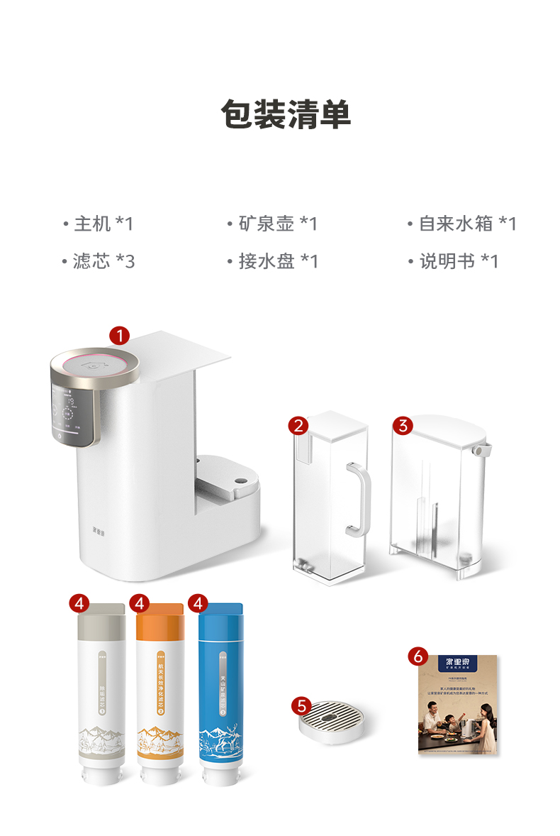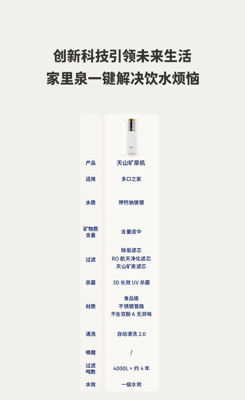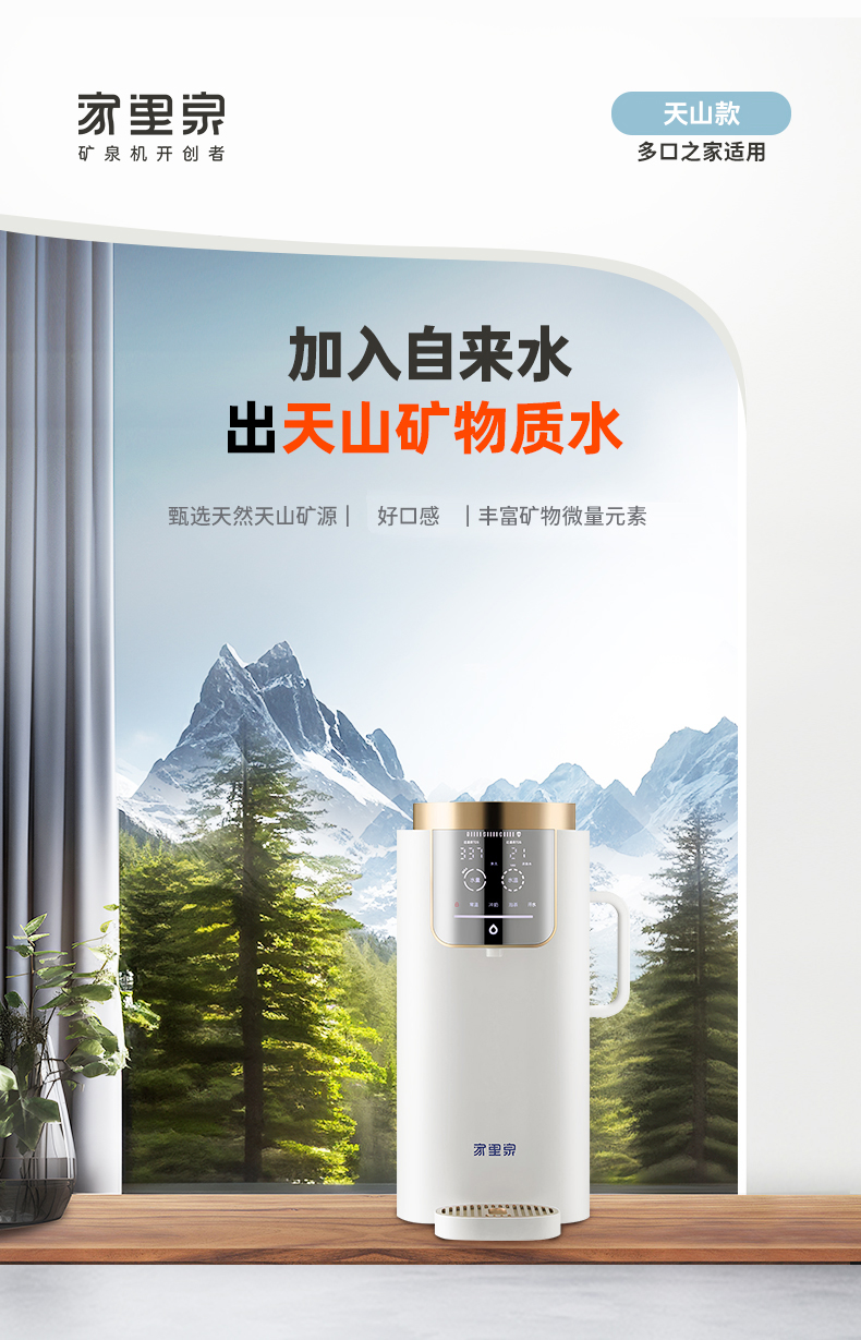 【支持试用!加自来水出矿物质水】【一台=净水器+饮水机+烧水壶+恒温壶+保温杯】家里泉天山AI智能款矿泉机【台式免安装】即热式RO反渗透净水机 水质符合国家标准 2年质保 一年以换代修