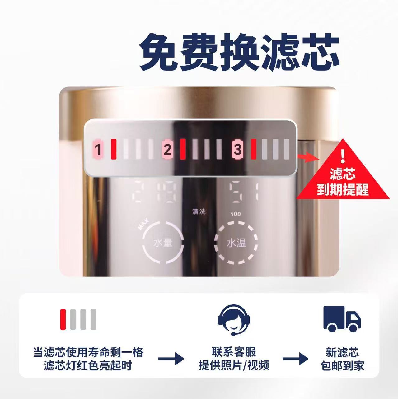 当机器提示需要更换滤芯时可联系在线客服或者扫码机器上二维码联系官方客服进行更换