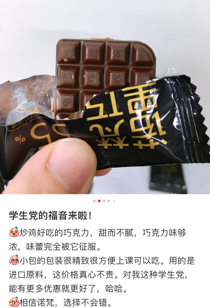 我个人是很推荐吃黑巧的,低卡低GI,膳食纤维含量高,不仅能提供热量,还可以增加饱腹感,而且黑巧中含有的咖啡因,在一定程度上能促进新陈代谢,提高基础代谢率!下午来一片替代下咖啡,提提神,也是不错!之前没试过的建议从可可脂含量较低的开始,再慢慢循序渐进,如果还是觉得有丢丢苦也不要紧,直接加入牛奶或拿铁里稍微加热,做成热巧克力就真的,巨好喝!