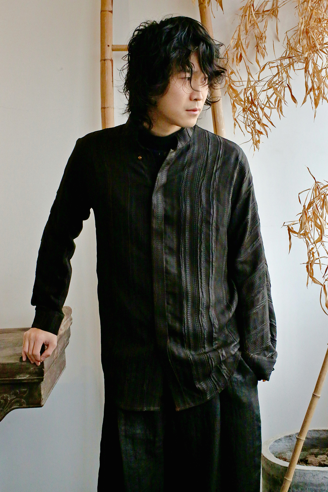 盛唐牡丹 | 鱼鳞纹香云纱男士衬衫