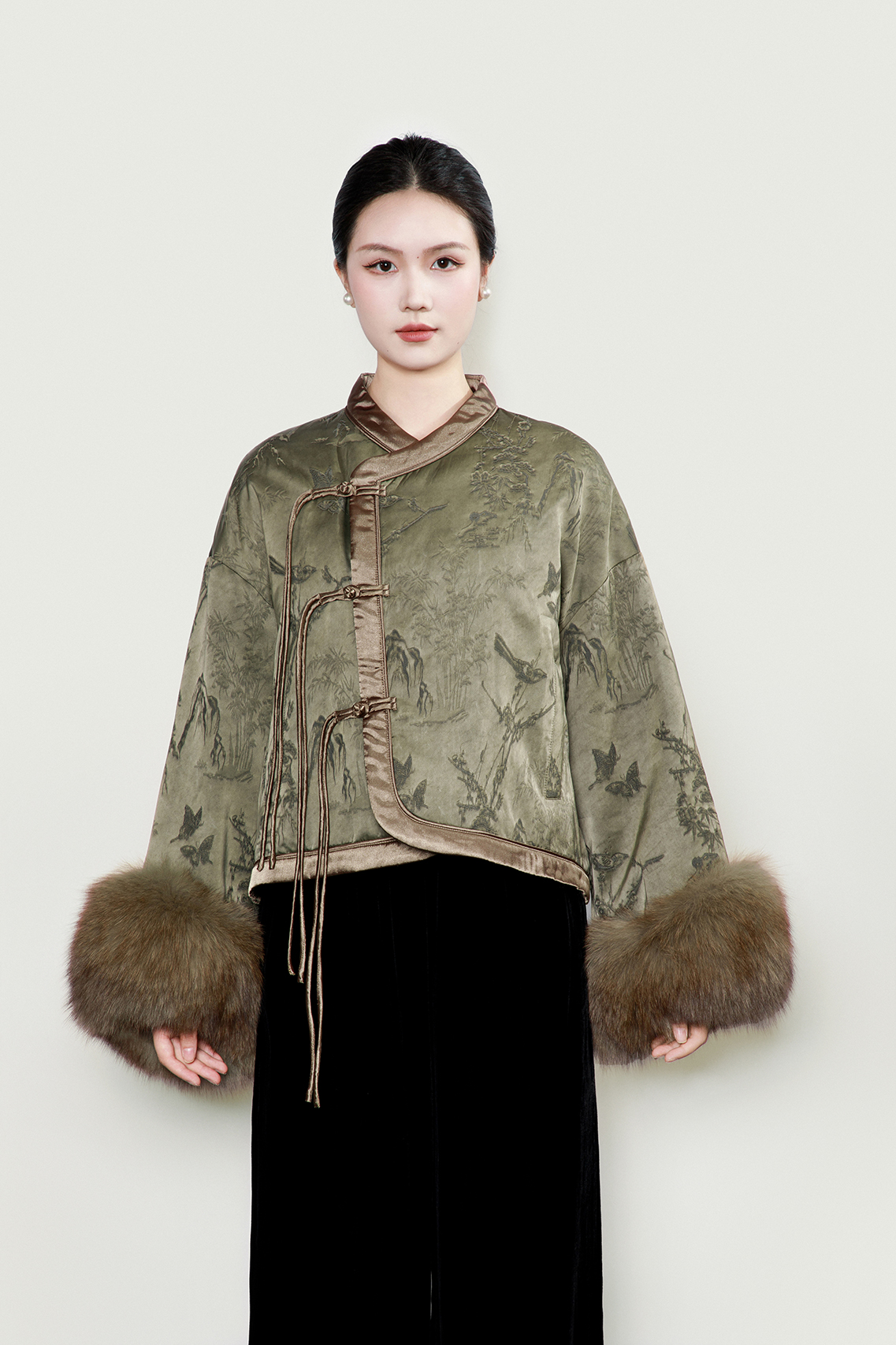 盛唐牡丹| 深豆绿提花偏襟皮草羽绒服