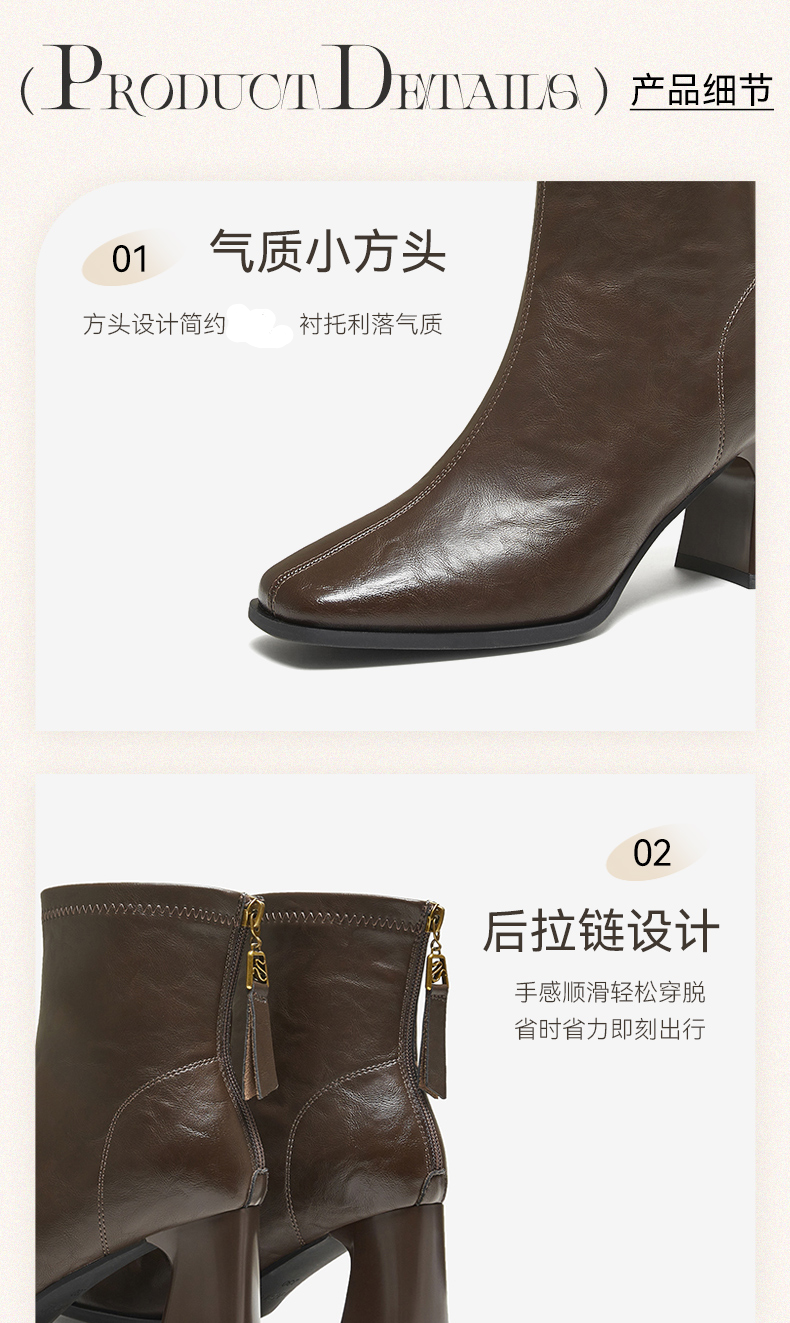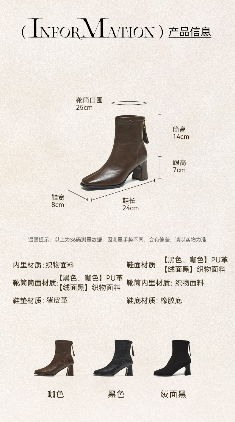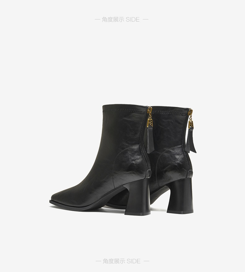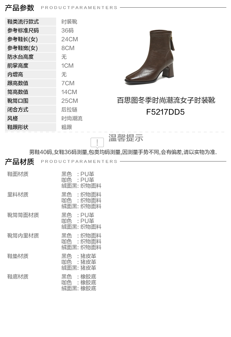 【云粉节】【简约主义】BF楼百思图25冬新款法式小踝靴女短靴马丁靴F5217DD5吊牌价799.现价400