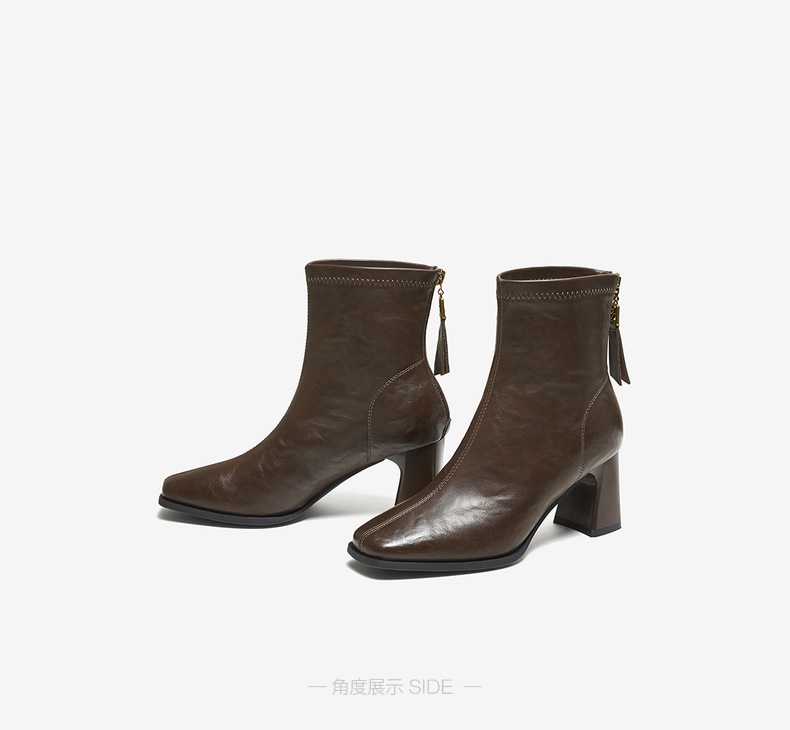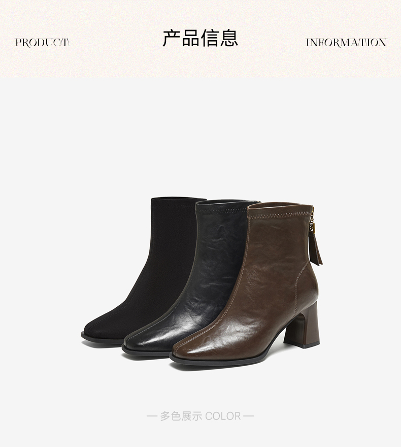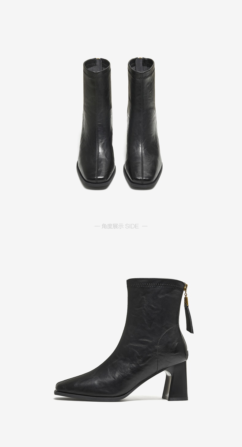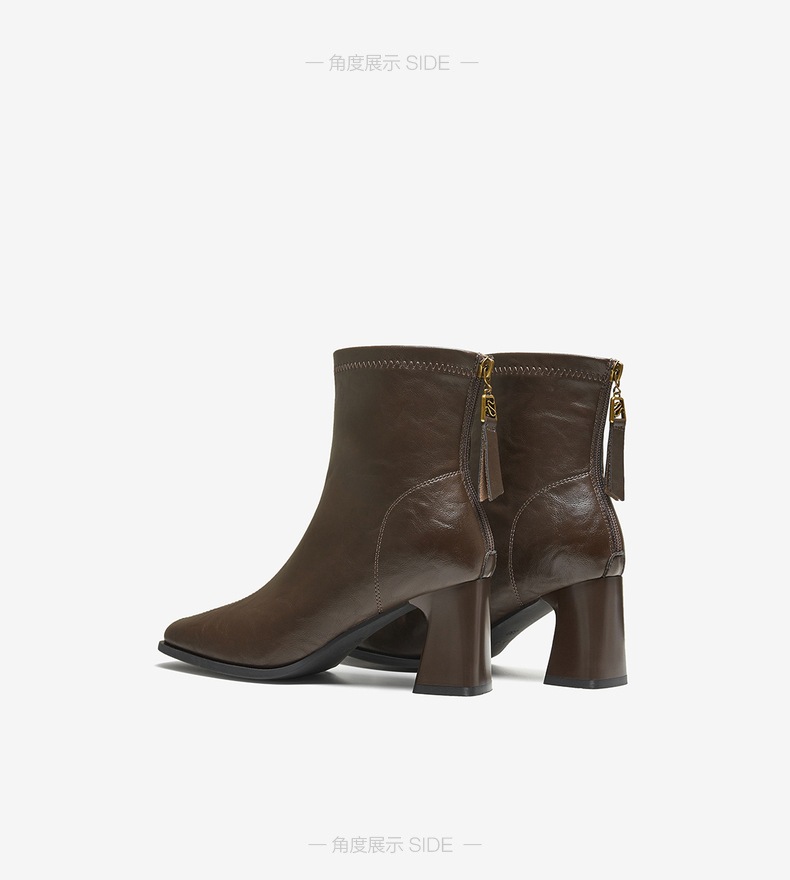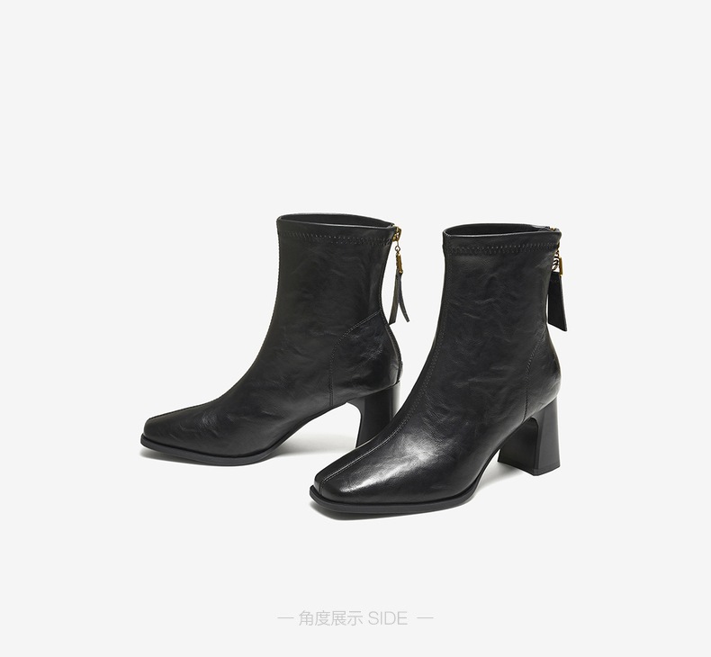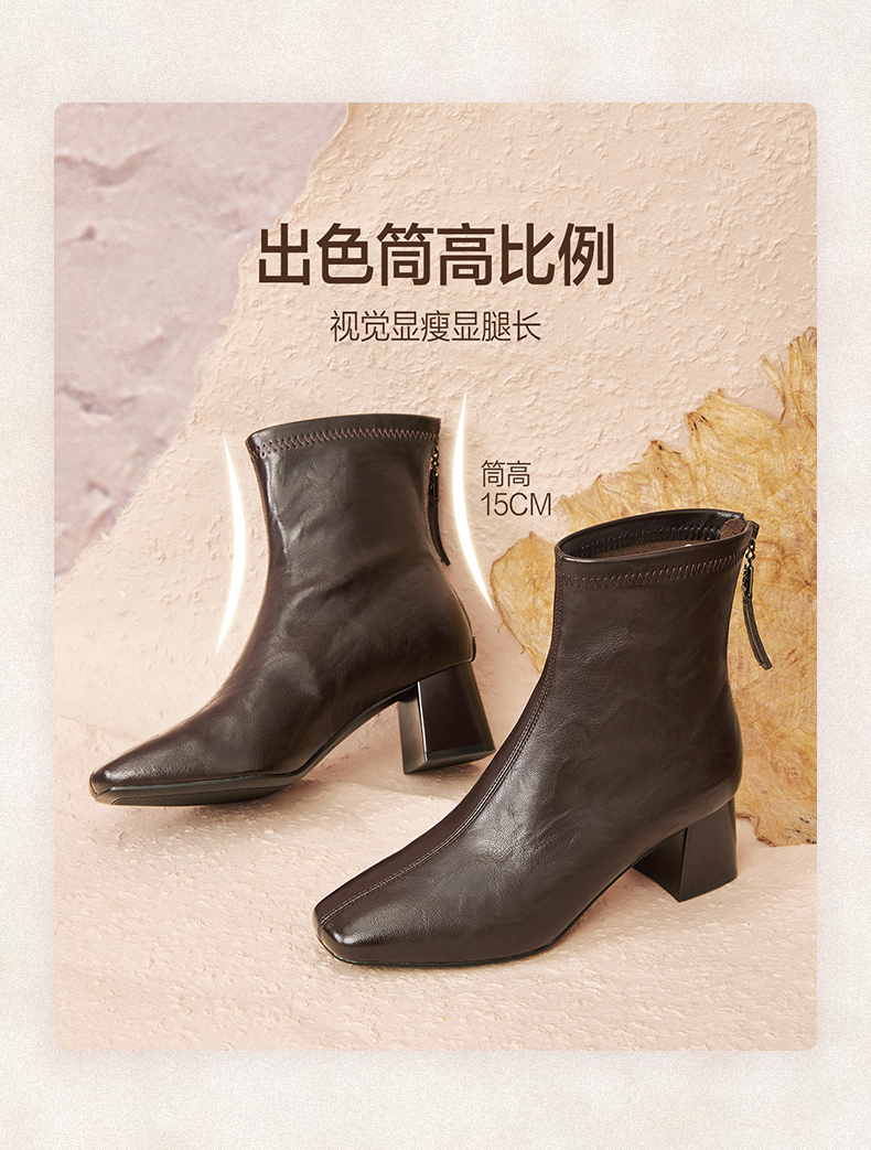 【云粉节】【简约主义】BF楼百思图25冬新款法式小踝靴女短靴马丁靴F5217DD5吊牌价799.现价400