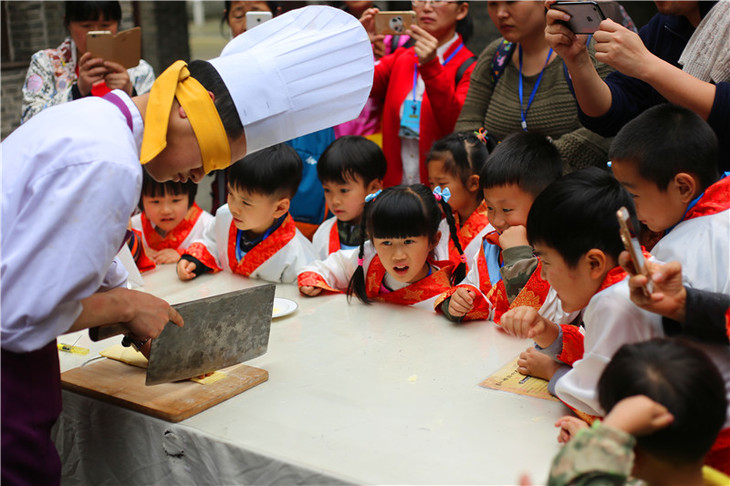 小朋友现场观看并品尝制作好的菜品,感受传统川菜的刀功、火候及成菜过程,从色、香、味、形、器,全面体会“鼎中之变” 带来的视觉和味觉的冲击与愉悦。