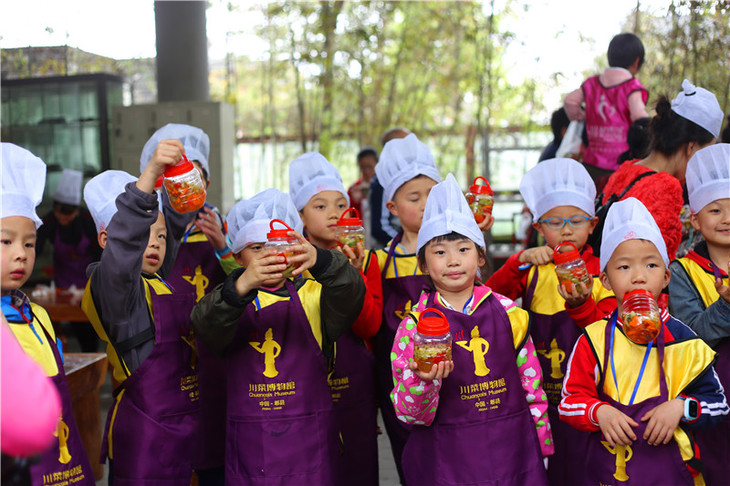小朋友和家长参观典藏馆的同时学习川菜五味,学习经典川菜的来历和食用常识,学习辣椒科普知识及历史,参观川式厨房、堂屋。另外有川菜有奖问答环节,赚取馆币,馆币可以兑换礼品的喔~