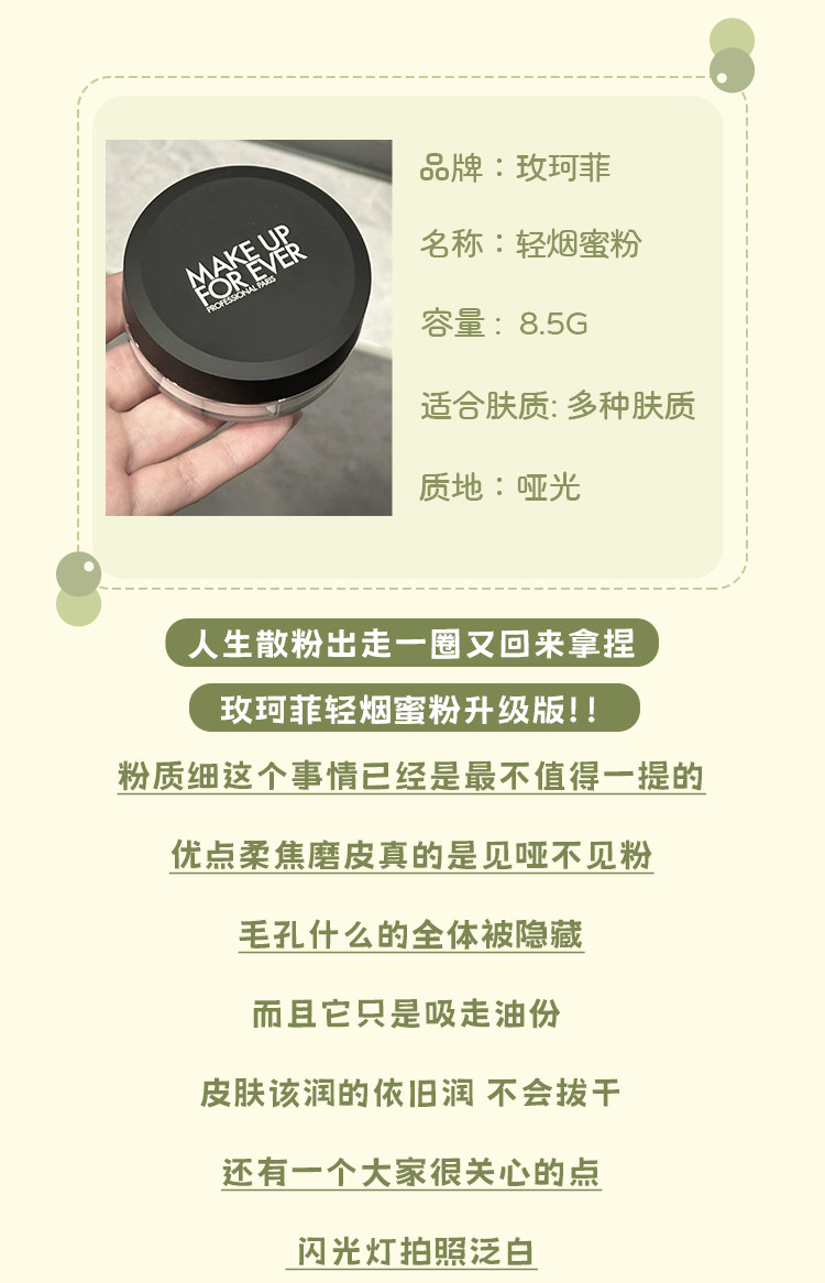 现货▲新版!Makeupforever玫珂菲轻烟蜜粉/散粉 8.5g