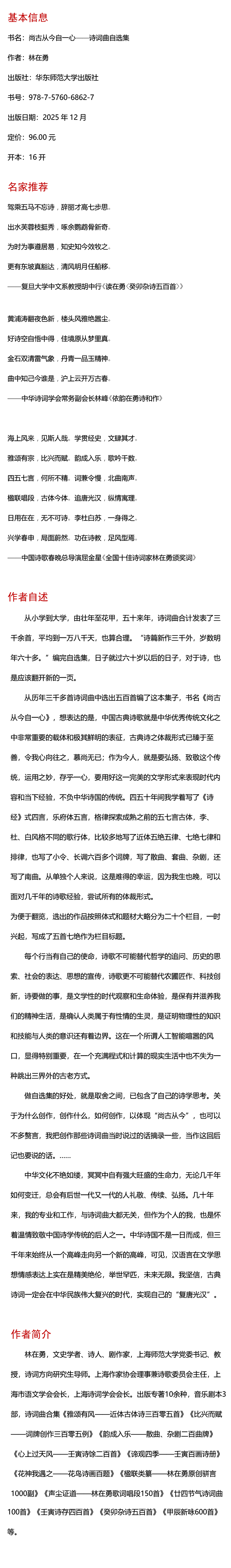 尚古从今自一心 诗词曲自选集 林在勇