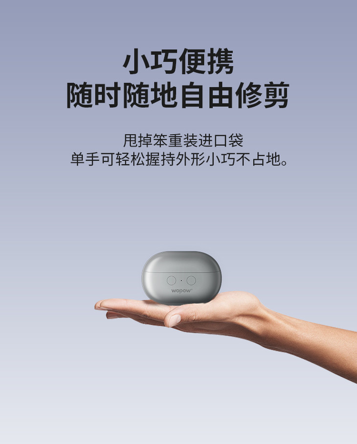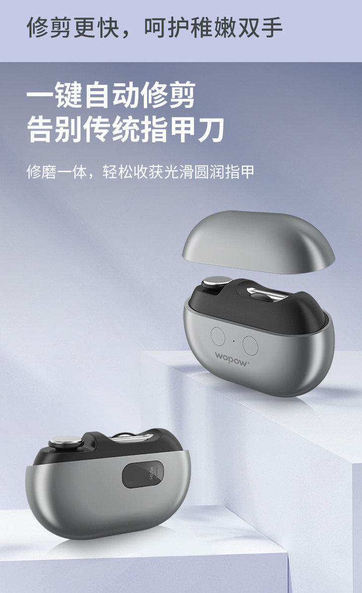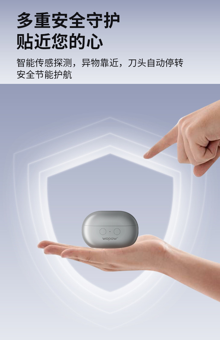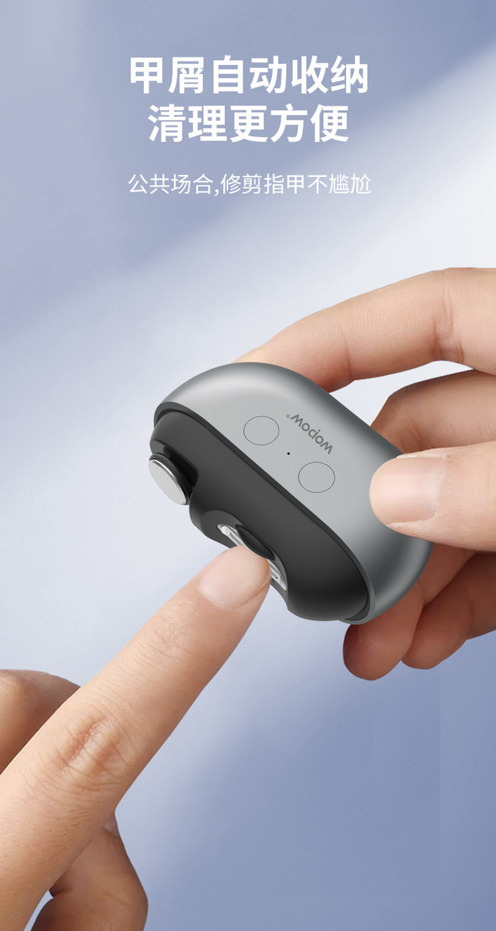 安全永远是第一位的,尤其是涉及老人、小孩甚至宠物时。沃品电动指甲刀用的是磁吸安全防护罩,特制的弧形刀口就像一个小手套,紧紧抱住指甲,圆润的边角完全不会刮蹭到皮肤。而且,智能感应刀头精准控制修剪深度,避免伤害指甲和周围皮肤。行动不便的老人和活泼好动的小孩,还有小宠物的爪子,都能修剪,放心使用,零误伤!