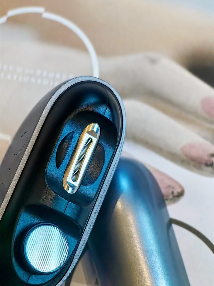 指甲刀还有三段式护理体验。轻触启动后,刀头高速运转,指甲被顺滑切断,干脆利落,剪下的指甲碎屑也会被自动吸入,不会出现碎屑满天飞,弄脏桌面的情况,省心又省力。修剪之后,再打开抛光功能,把指甲边缘进行精细打磨,让指甲护理一步到位!不过,要抛光甲面的话,还是需要一定技术了,多练习!