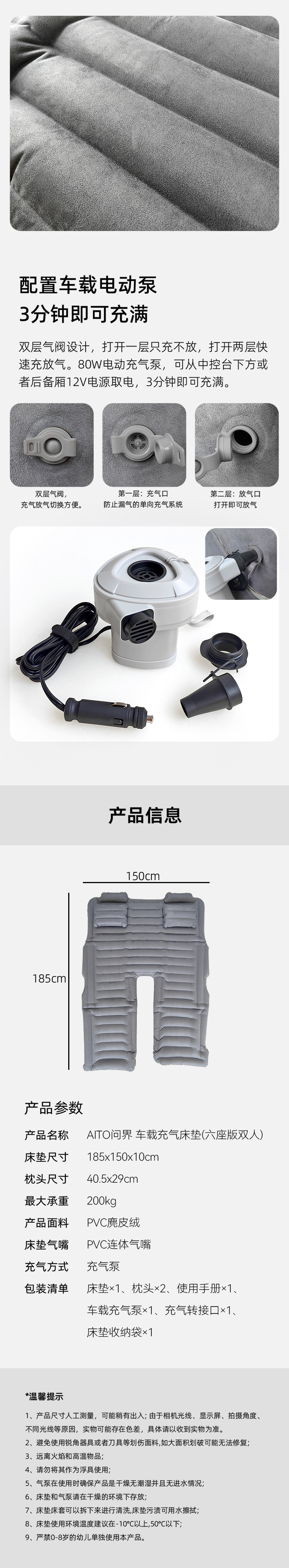 车载充气床垫 适配M8六座版 双人款