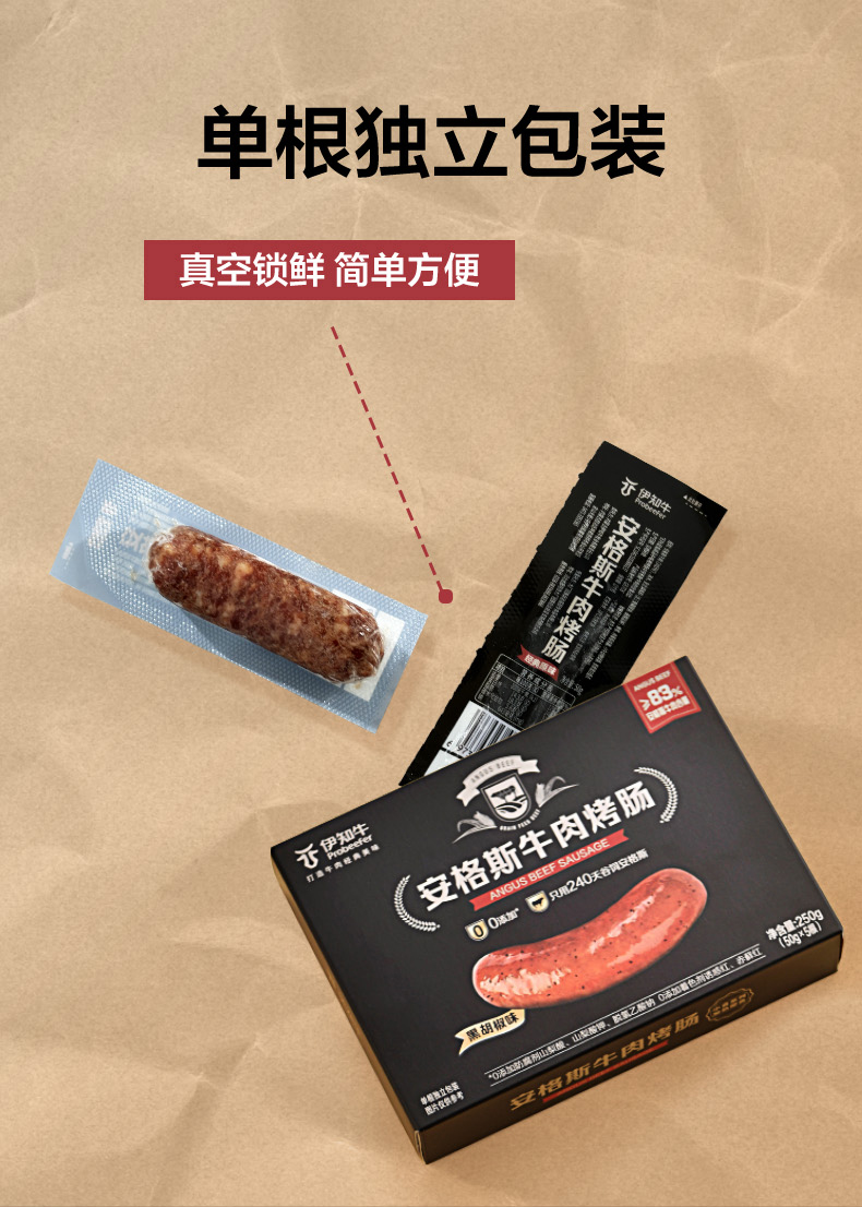 伊利伊知牛 安格斯烤肠(鲜麻藤椒味) 250g - 口口爆汁 0添加