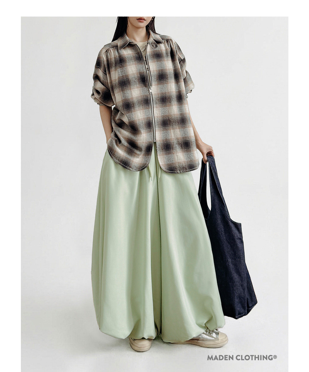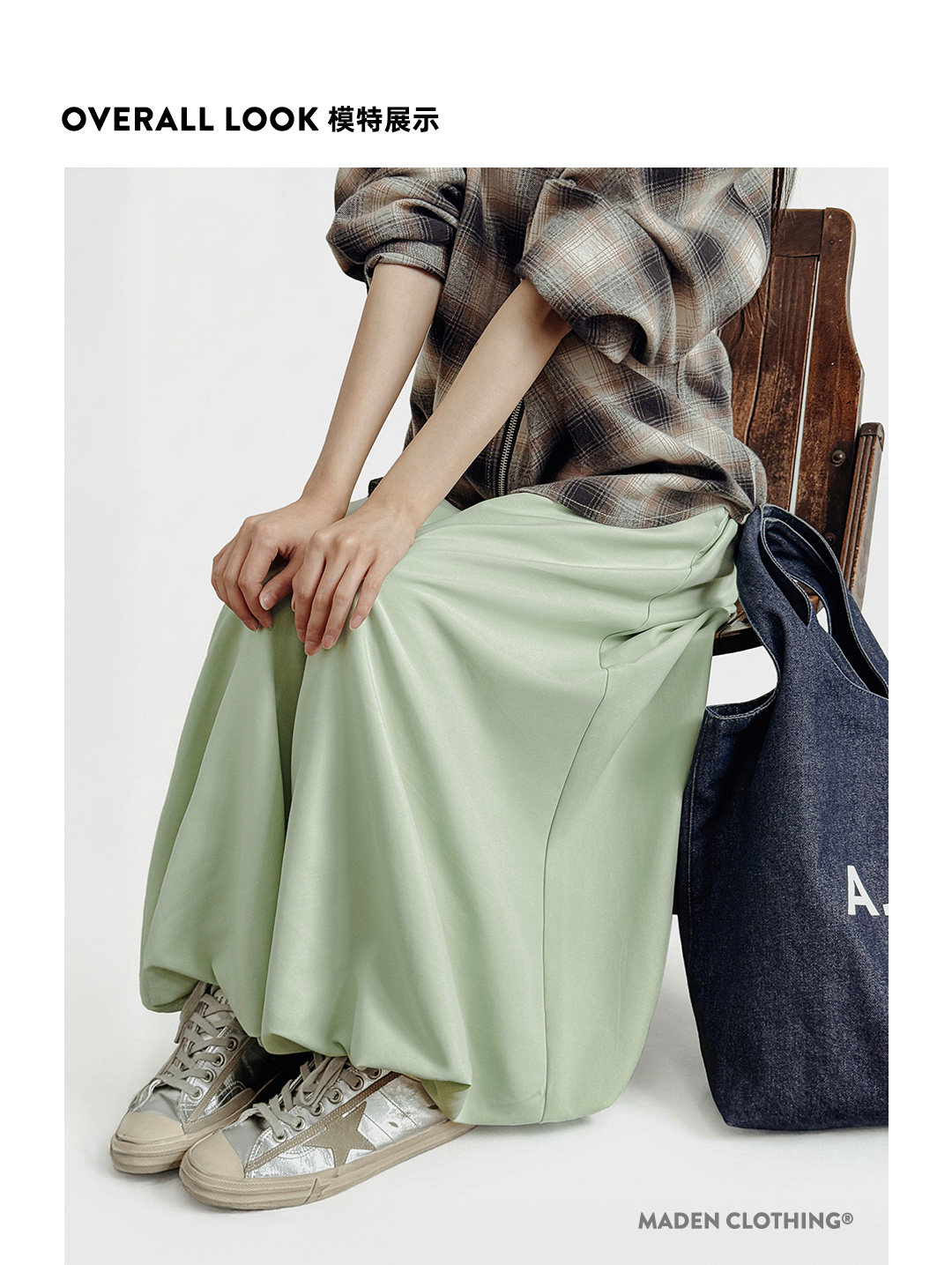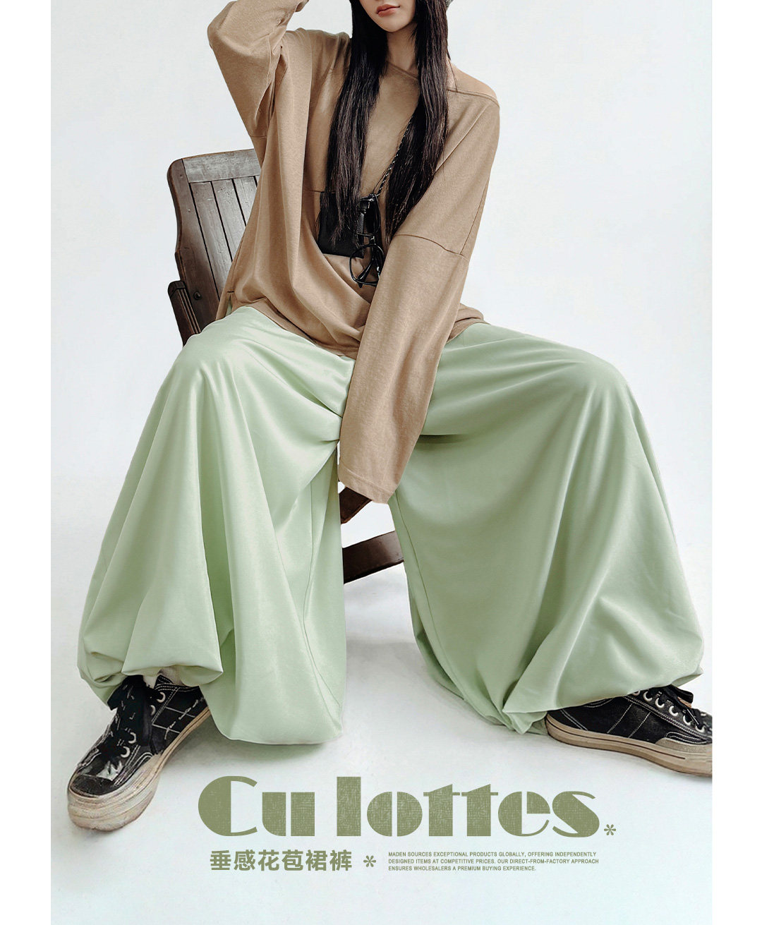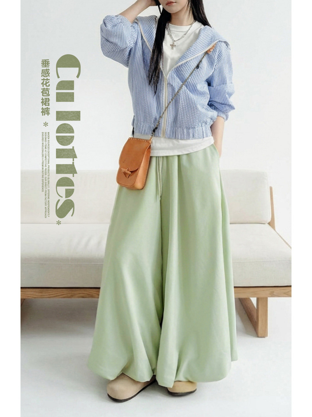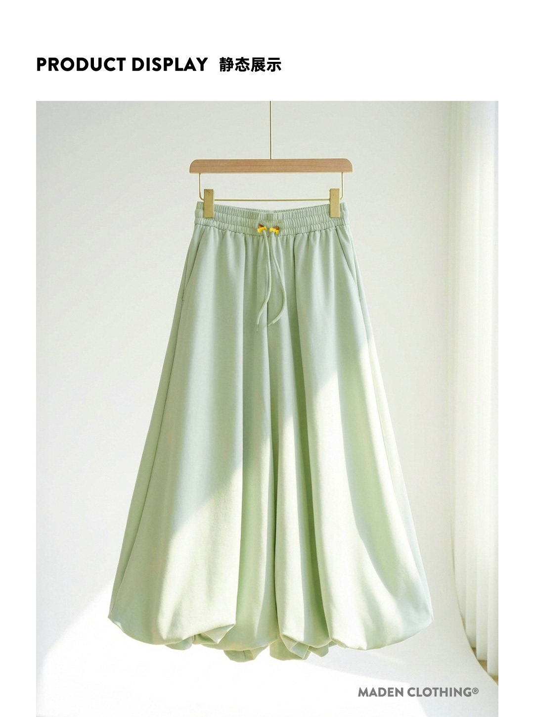 马登桃皮绒垂感糯米花苞灯笼裙裤阔腿宽松紧腰抽绳休闲长裤子女春