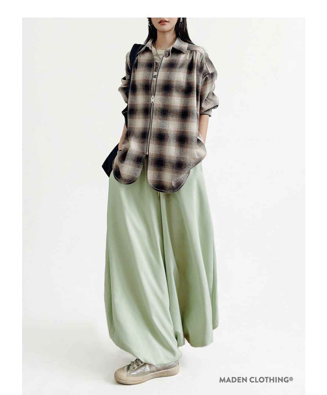 马登工装美式复古蓝绿色格子衬衫外套纯棉肌理感长袖薄款衬衣男秋