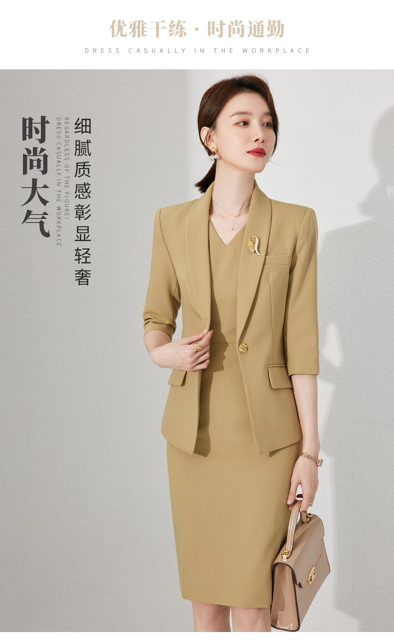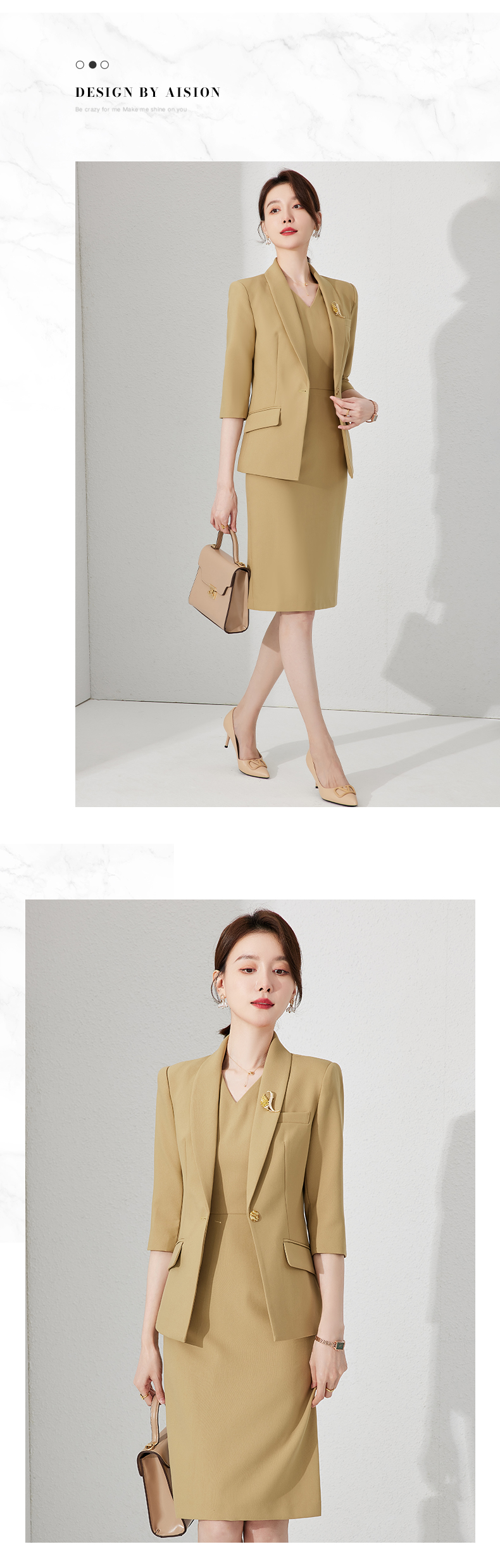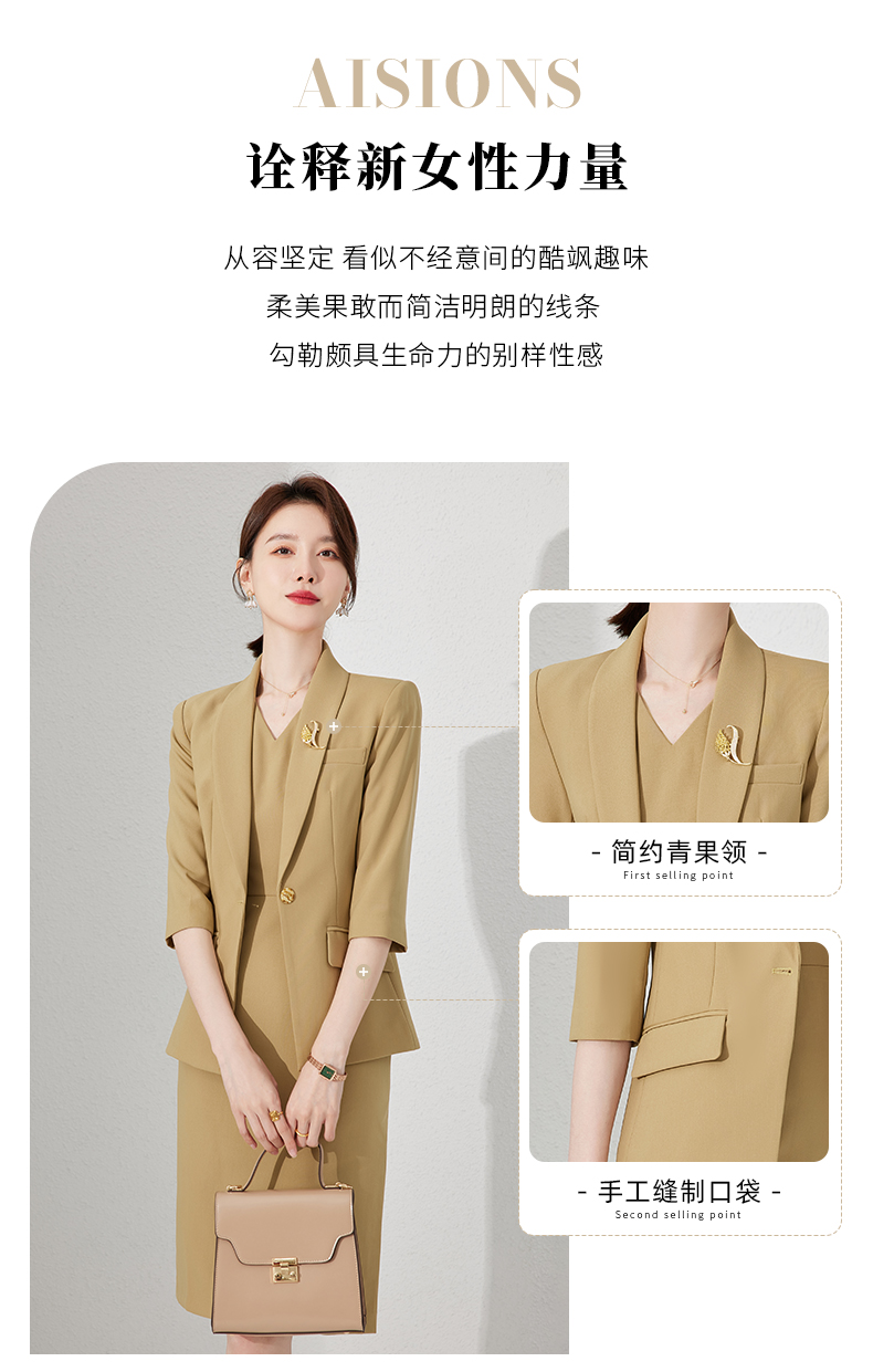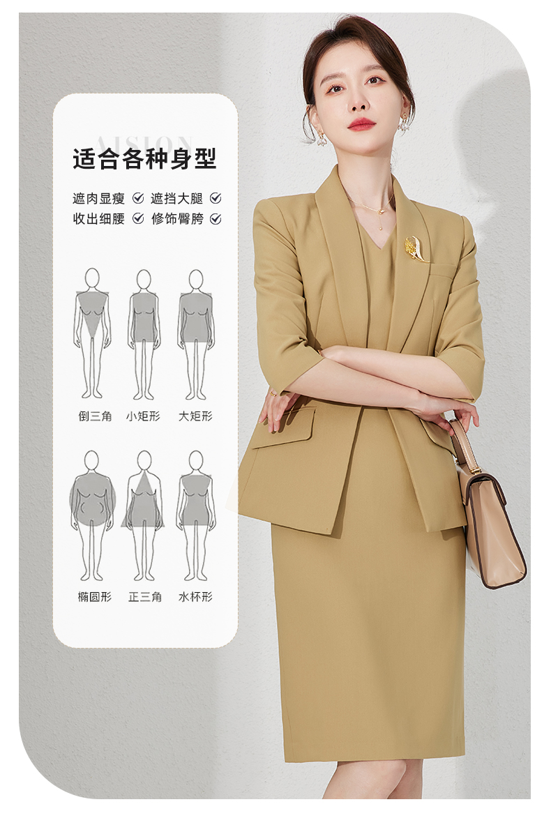 艾尚臣春装气质女神范套装设计感黄色经理职业装套裙正装连衣裙女