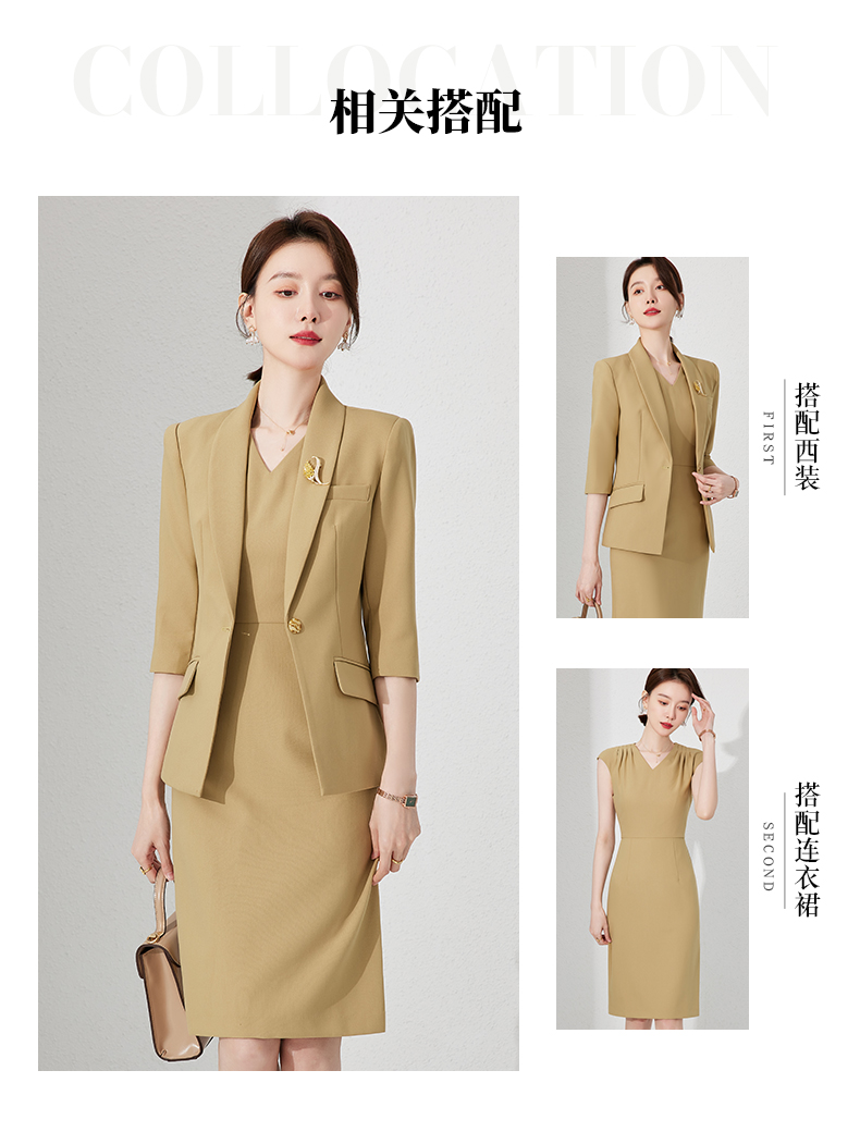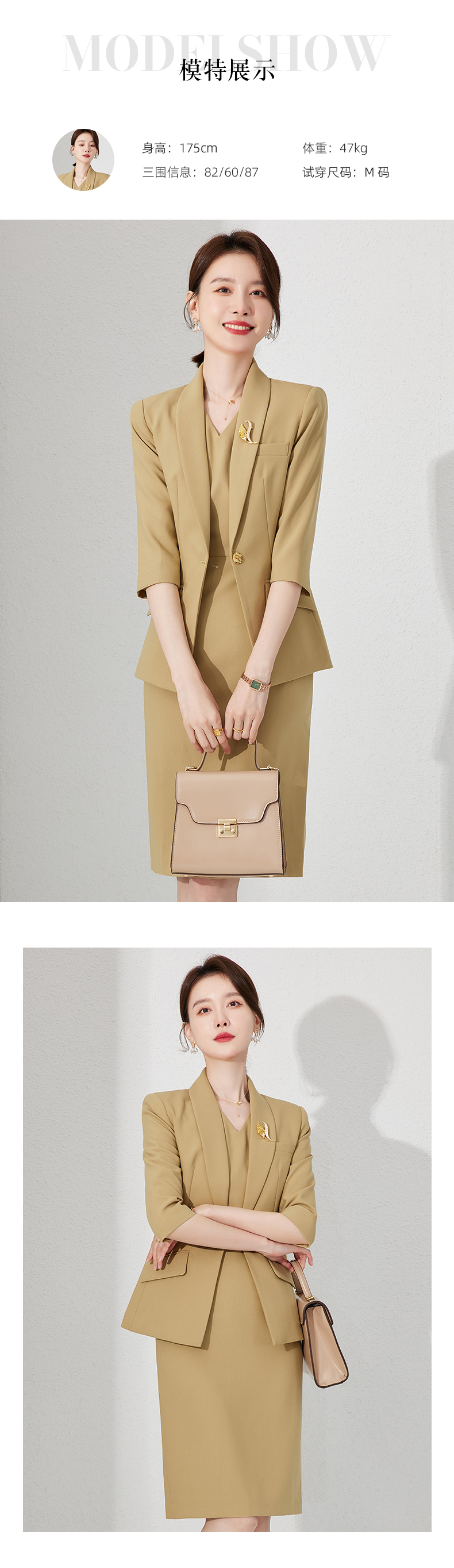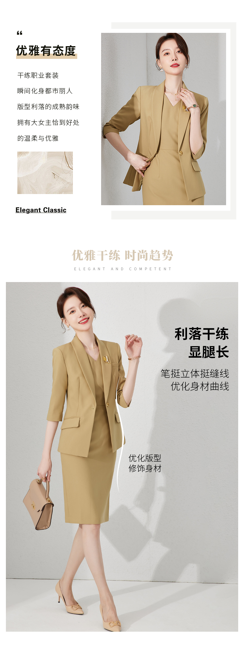 艾尚臣春装气质女神范套装设计感黄色经理职业装套裙正装连衣裙女