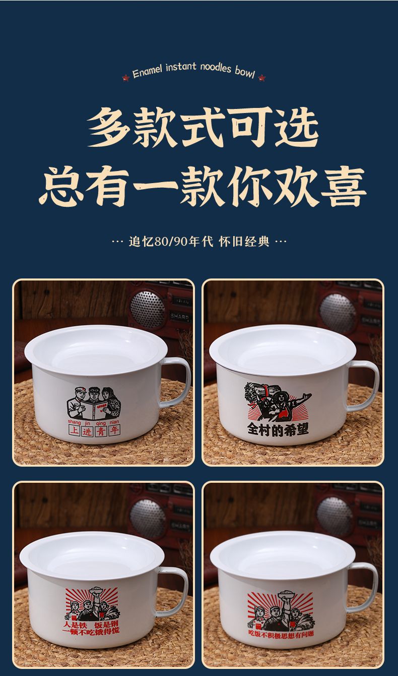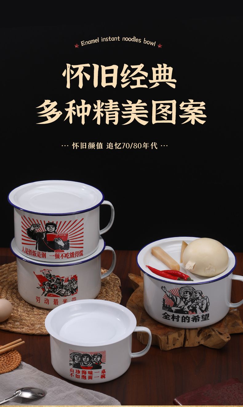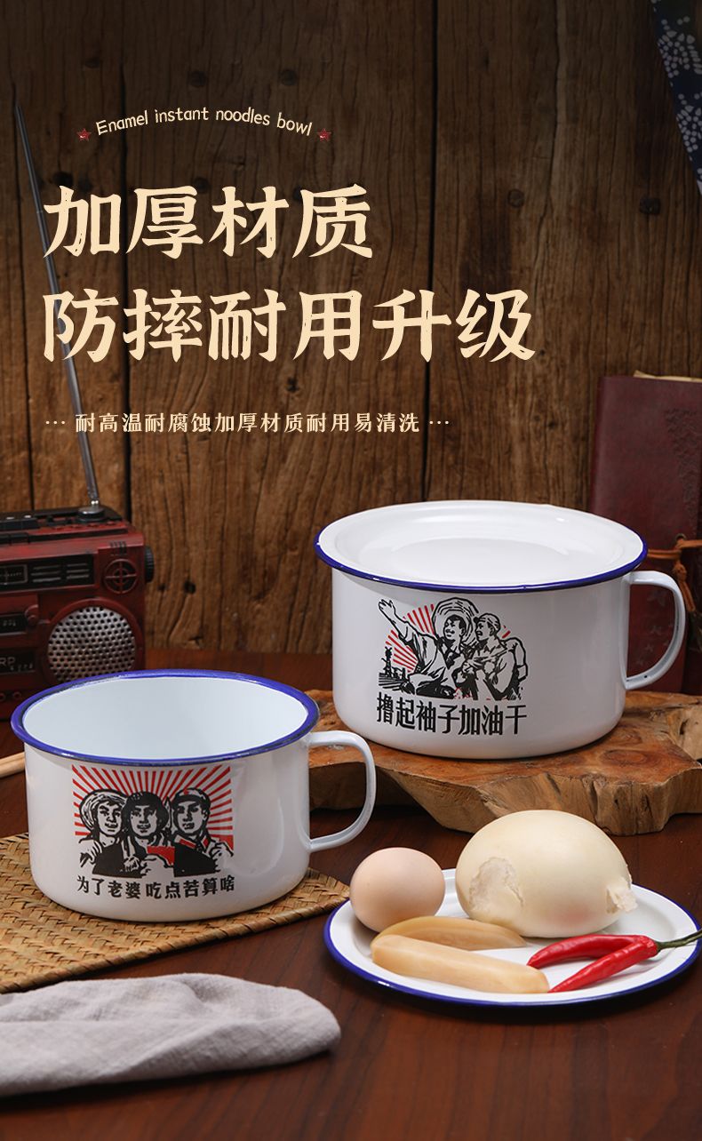 老式怀旧搪瓷碗带盖大缸子泡面碗超大号泡面神器学生宿舍快餐杯