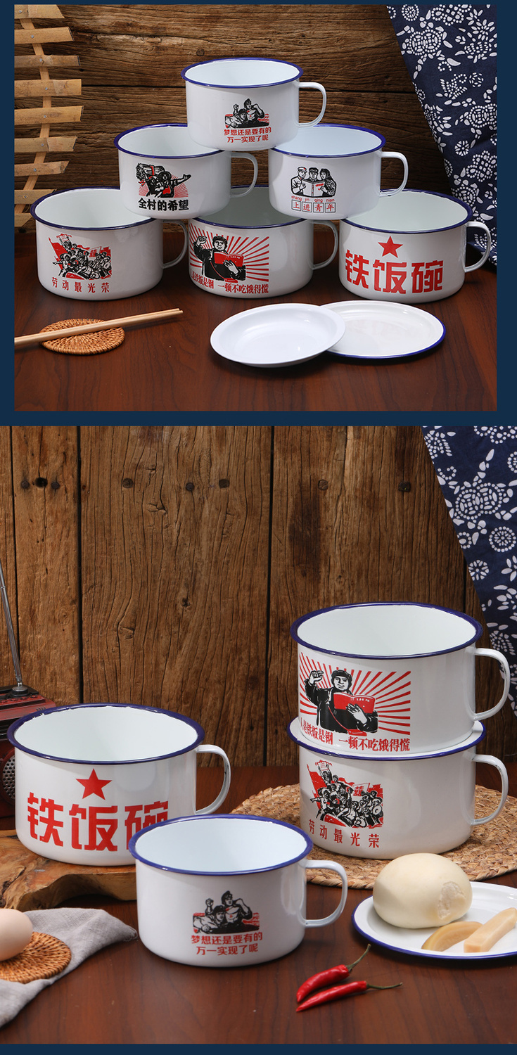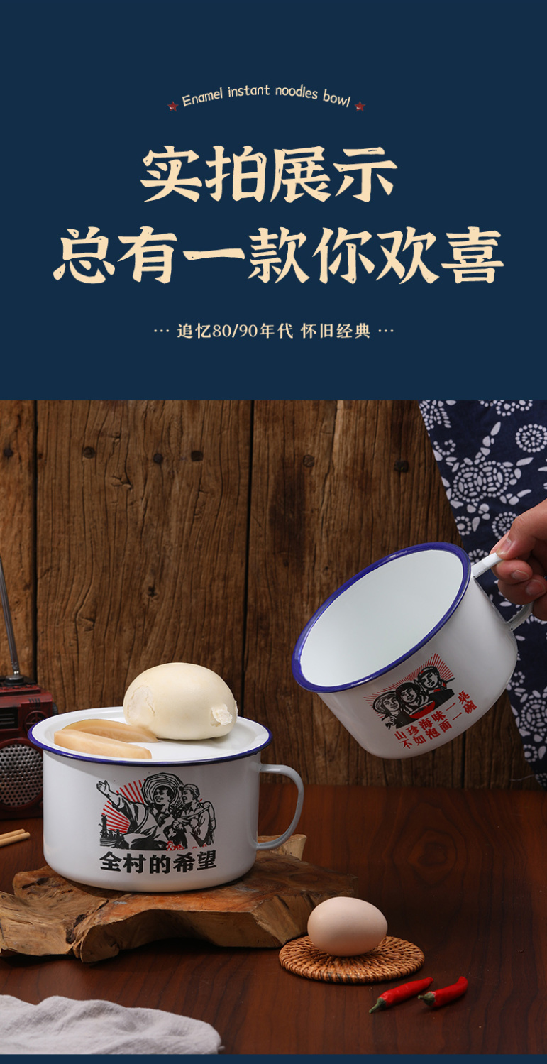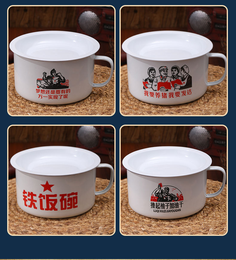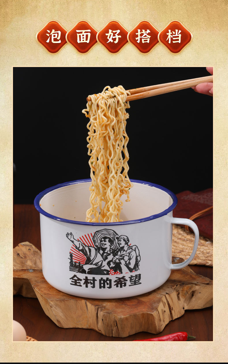 老式怀旧搪瓷碗带盖大缸子泡面碗超大号泡面神器学生宿舍快餐杯