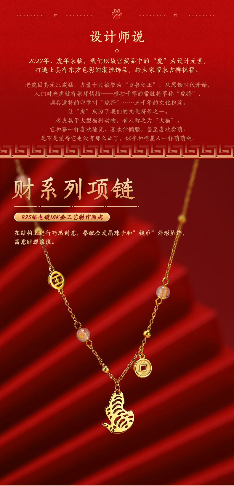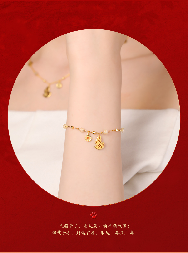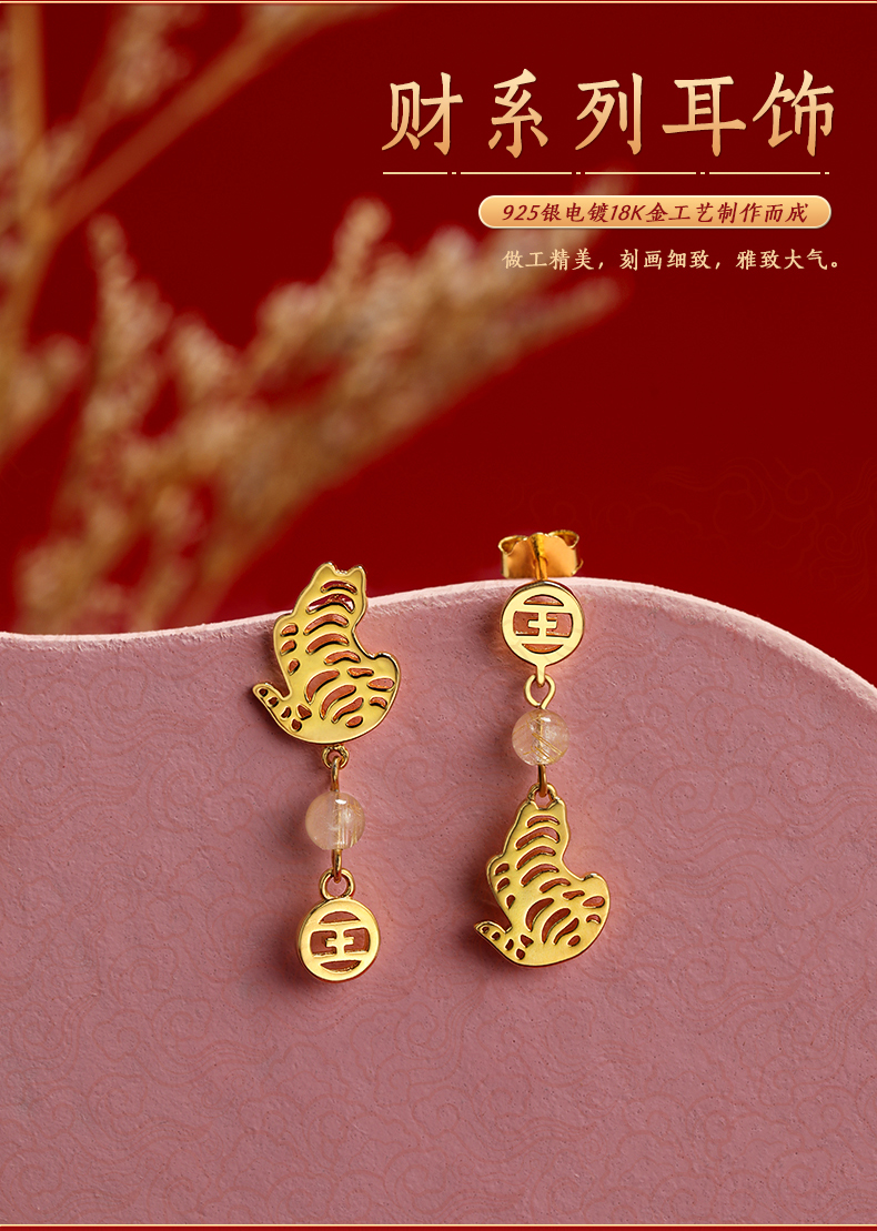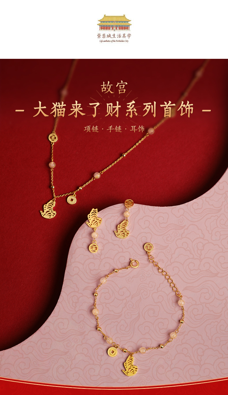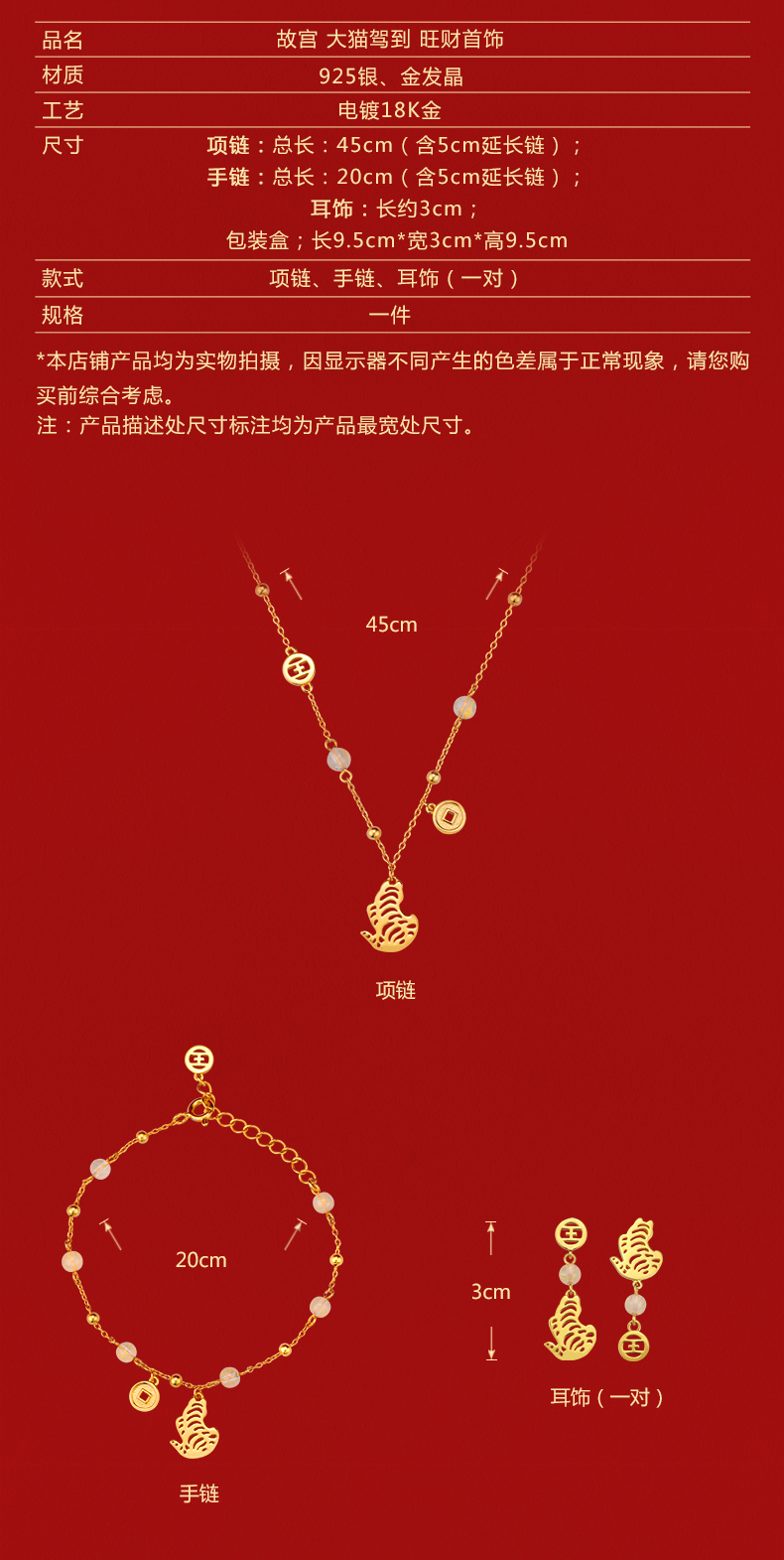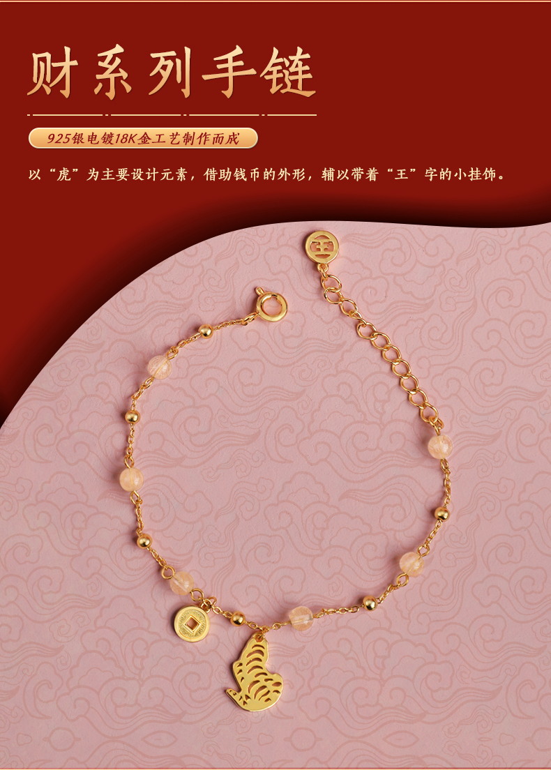 大猫来了财系列首饰 项链手链耳饰 925银 金发晶