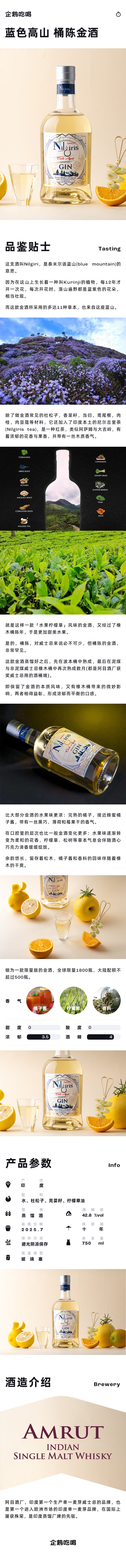 企鹅市集|限量贩售 印度阿目 蓝色高山 桶陈金酒750ml Nilgiri GIN 橘子酱柠檬草香