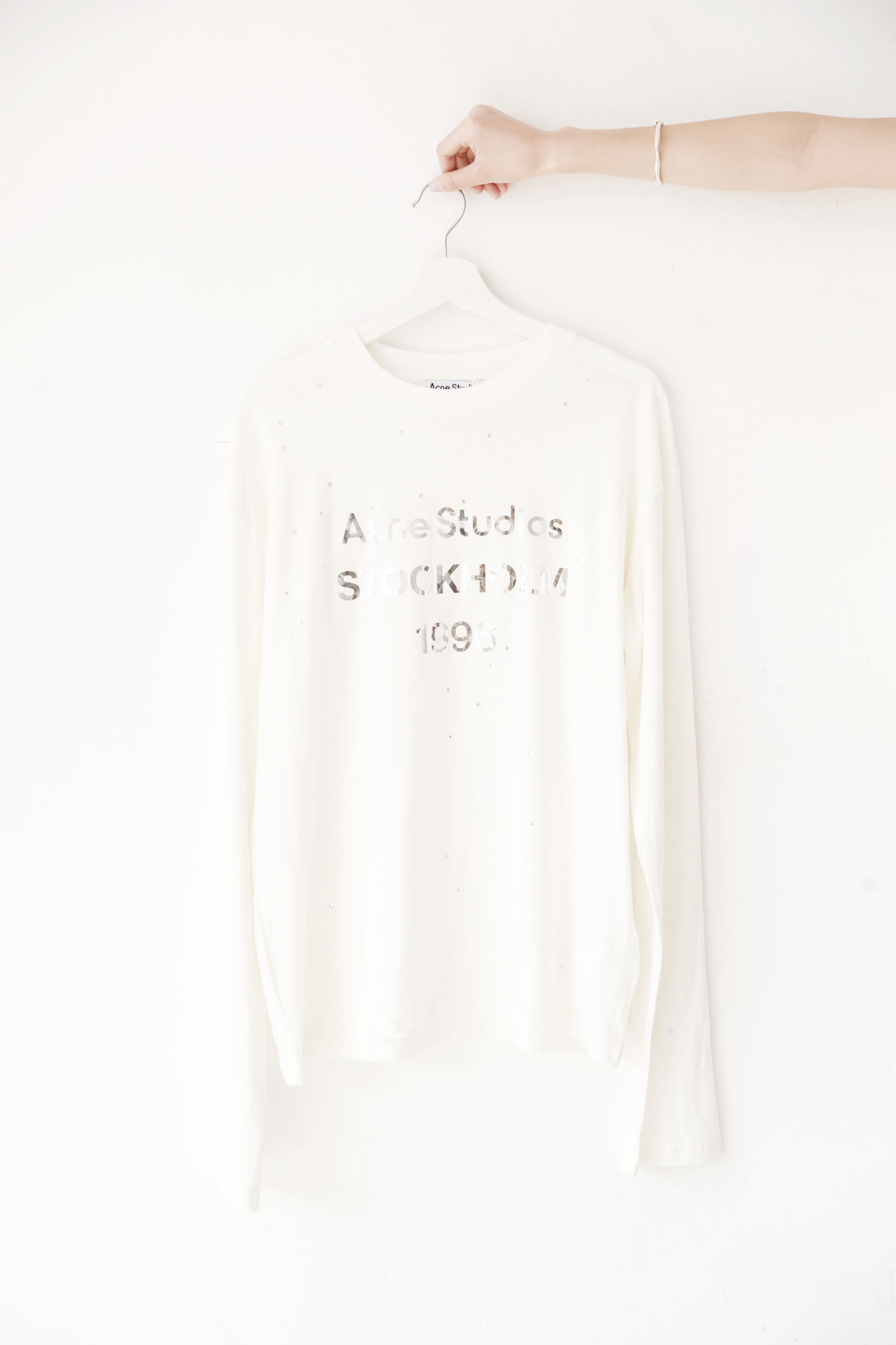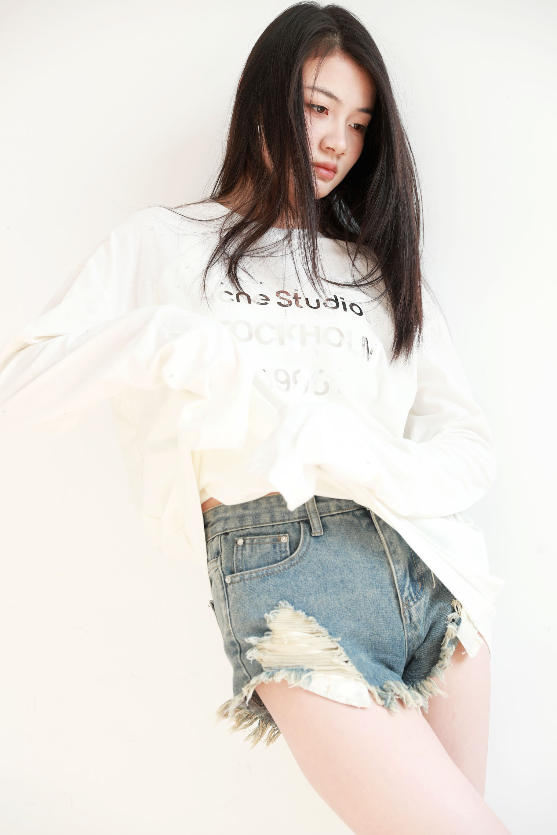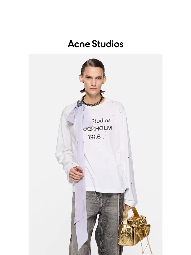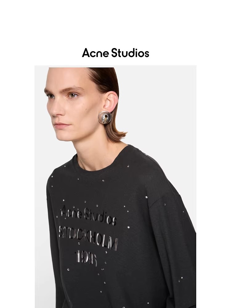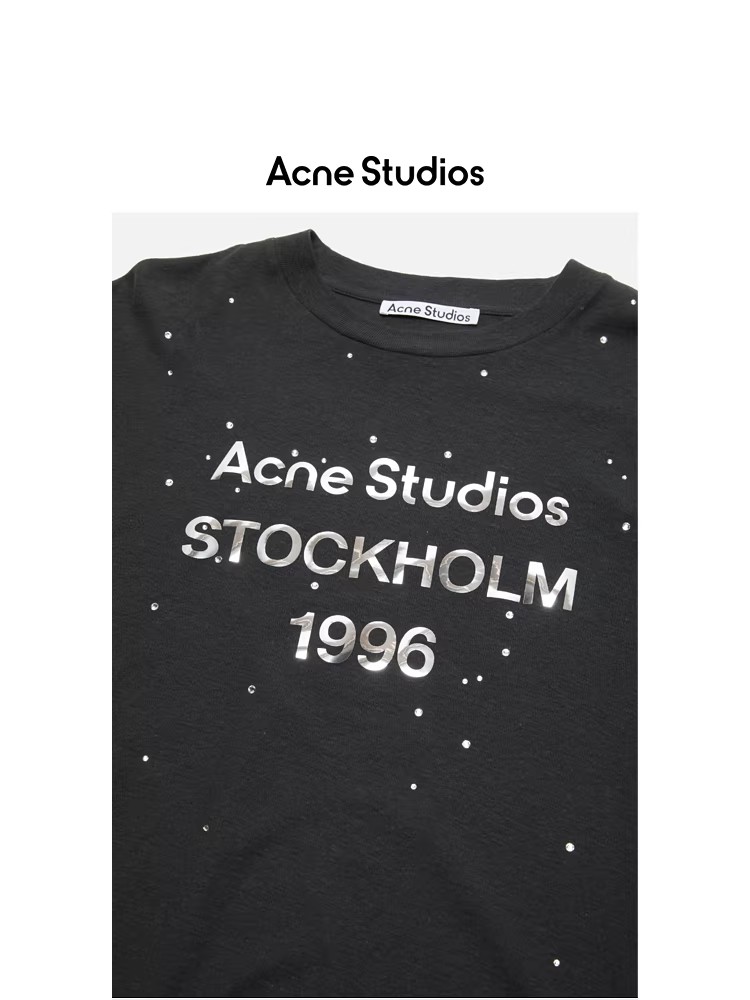 亮面闪钻tee,做旧字母长袖。正肩宽松设计情侣款圆领上衣E010866
