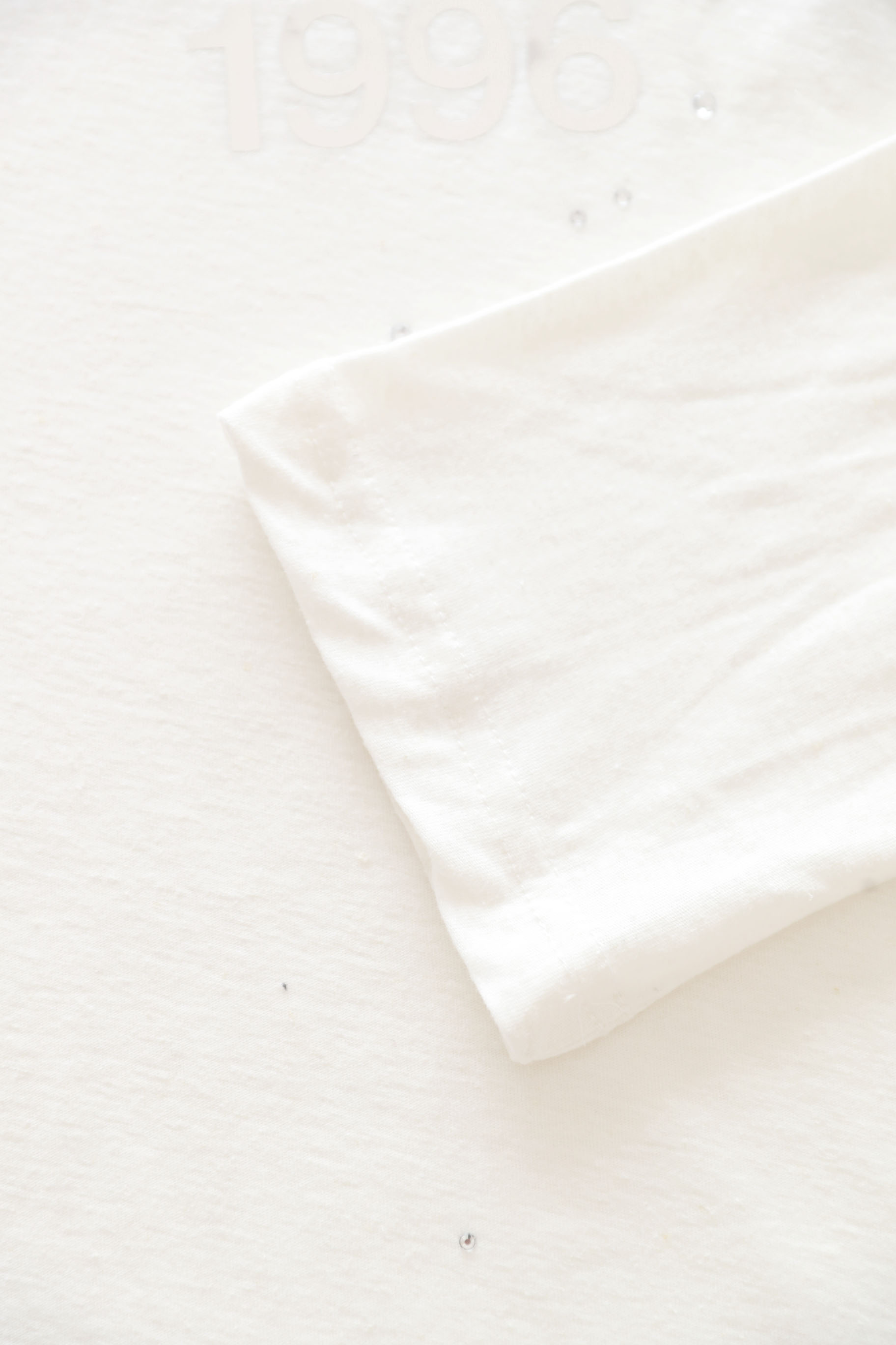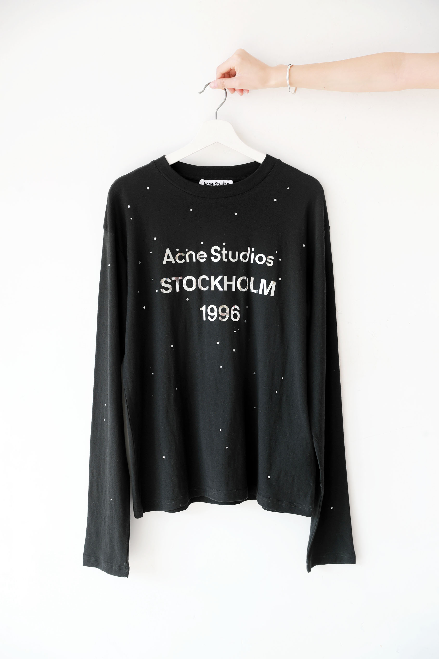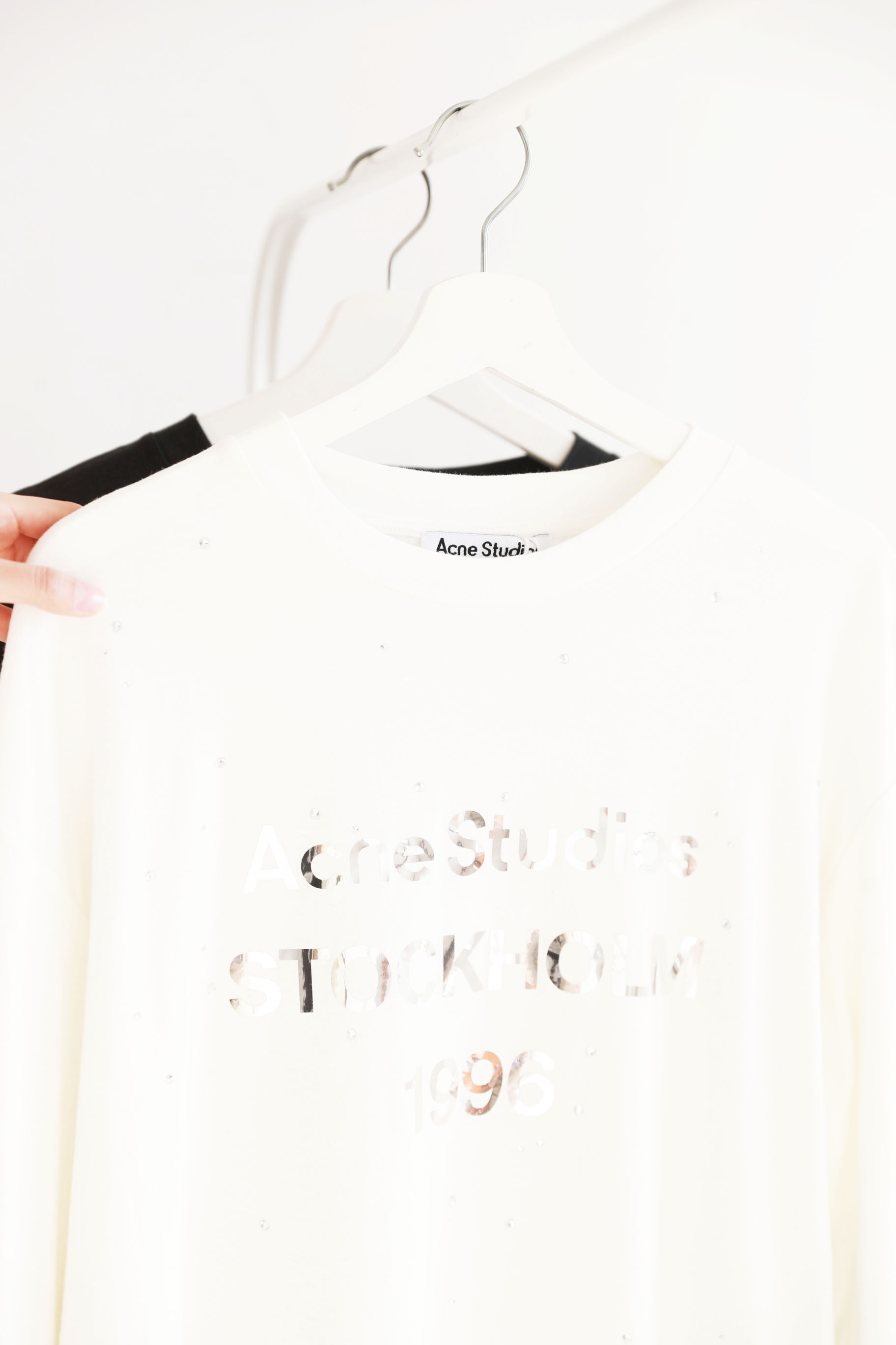亮面闪钻tee,做旧字母长袖。正肩宽松设计情侣款圆领上衣E010866