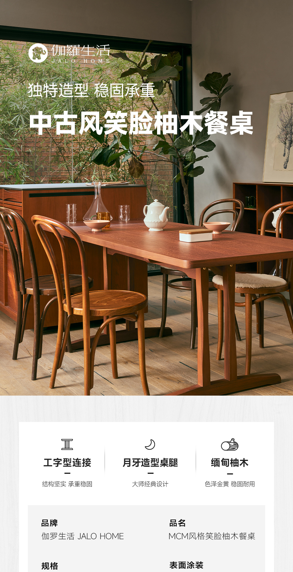 伽罗 JALO MCM风格柚木笑脸餐桌