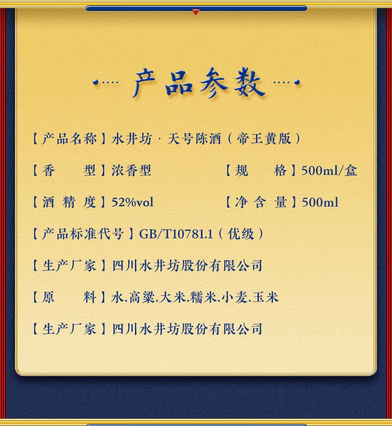 水井坊天号陈 浓香型白酒 500ml(52度)