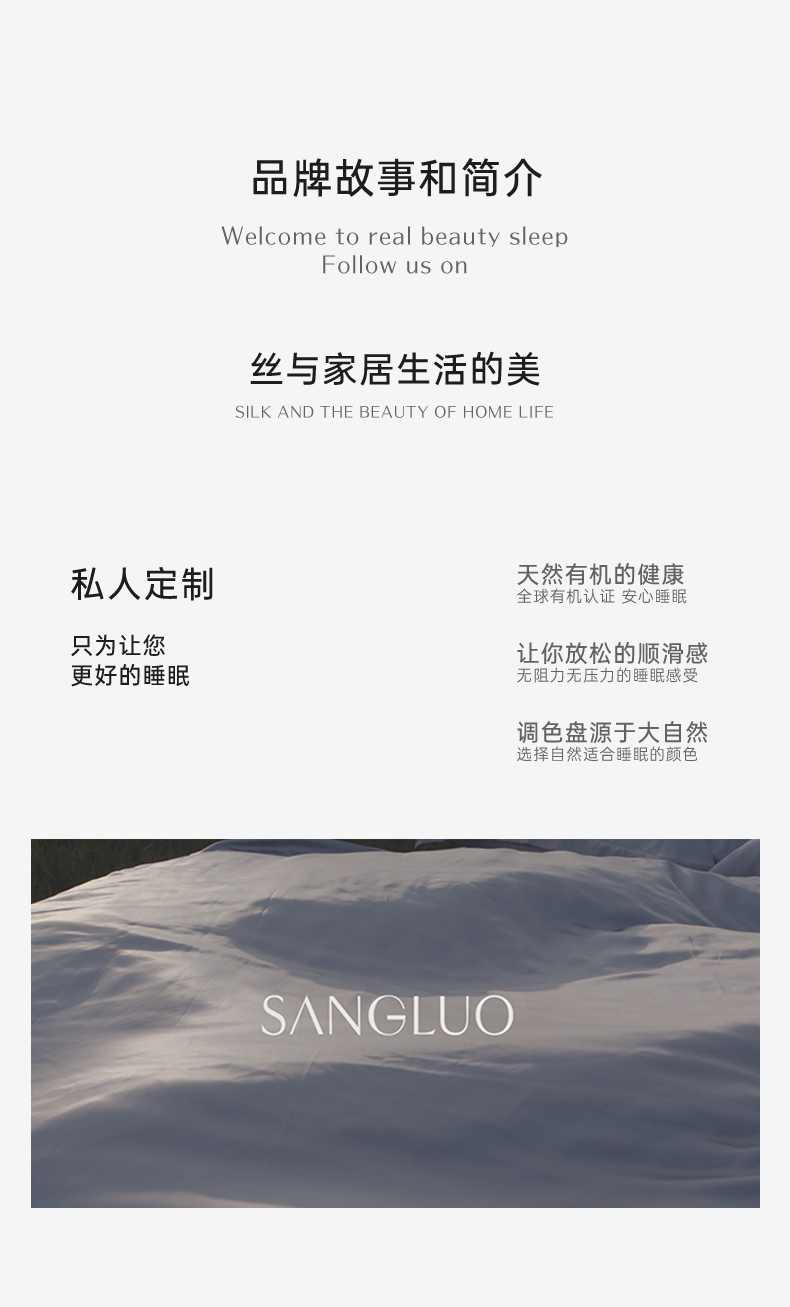 - 桑罗SANGLUO真丝奢华家居品牌,真丝睡衣睡裙,真丝四件套床品,蚕丝被,真丝内衣,真丝婴幼儿装,真丝洗涤液等。