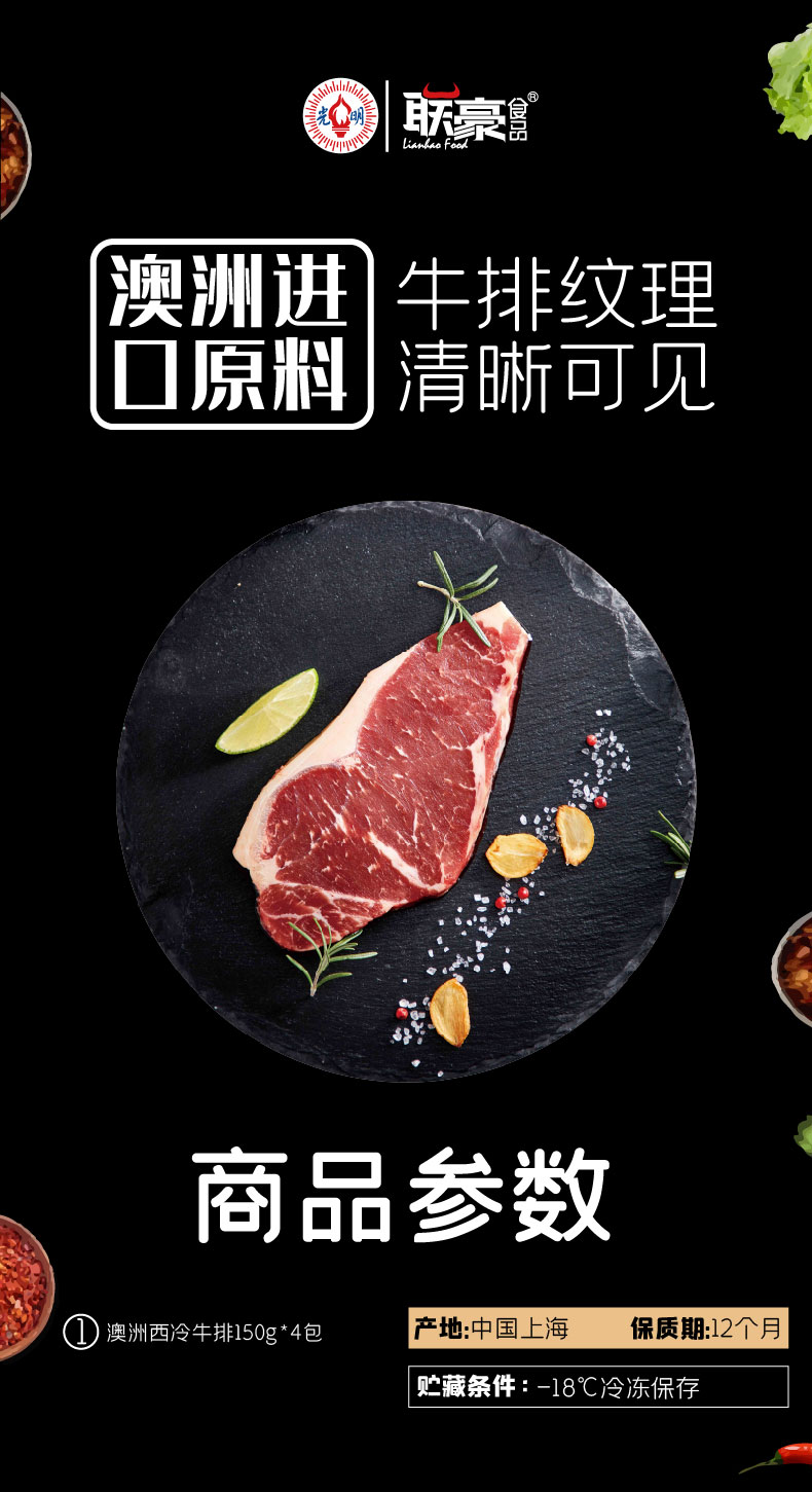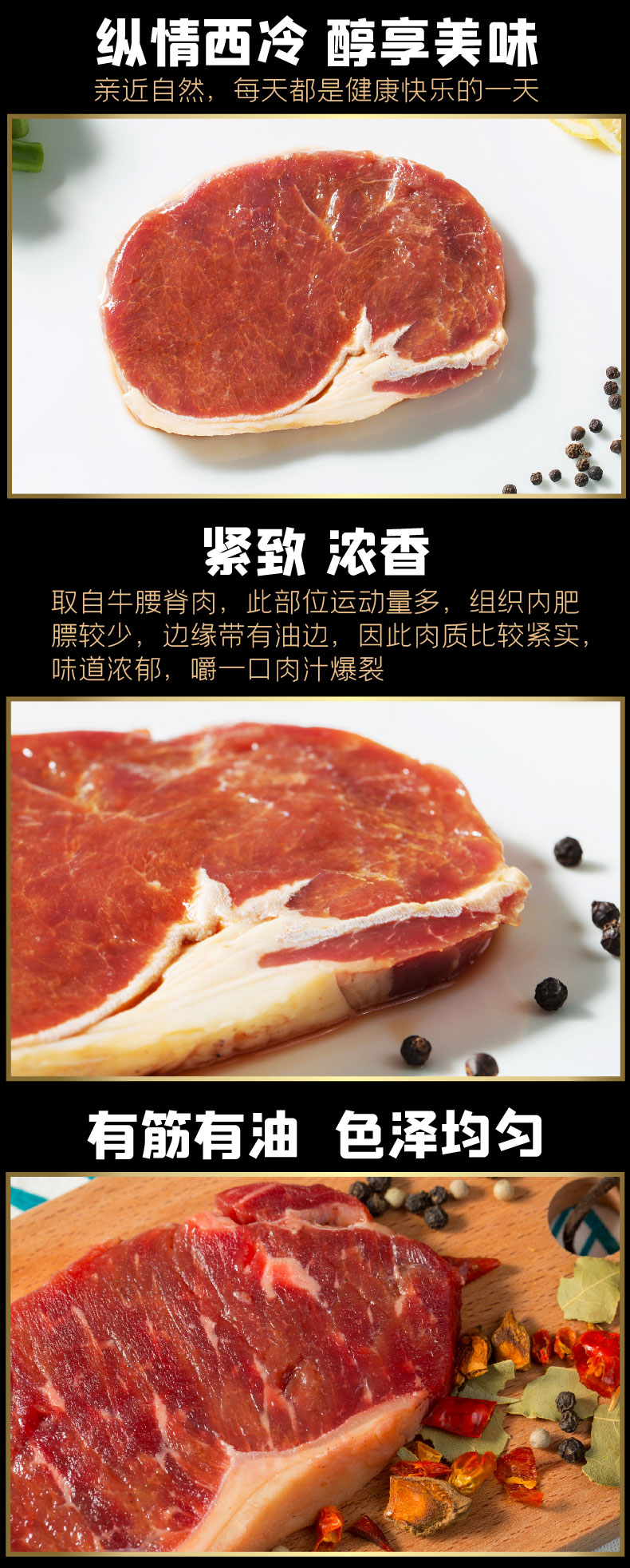 联豪食品原肉整切手工西冷沙朗牛排套餐8片1440g