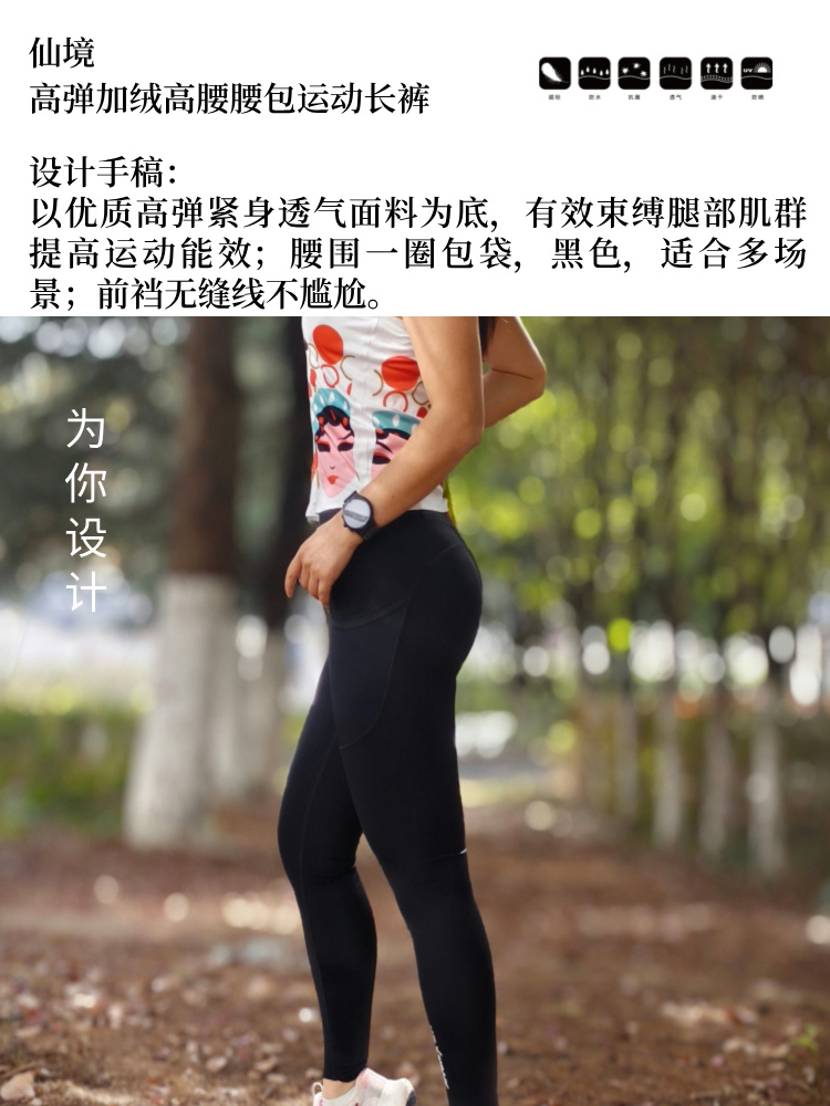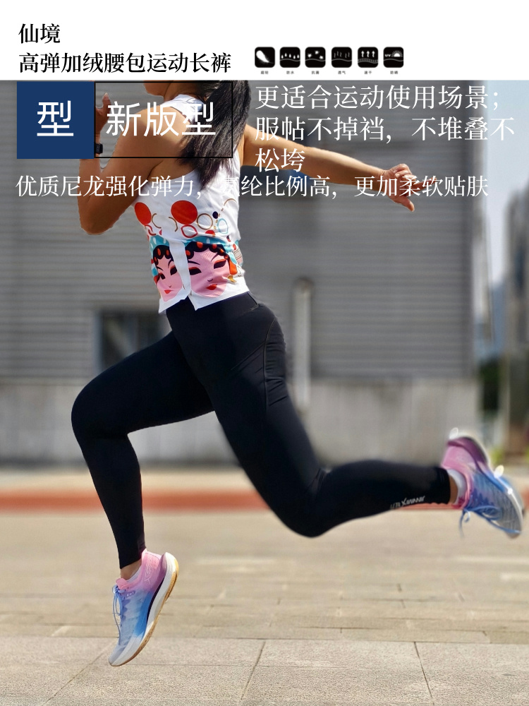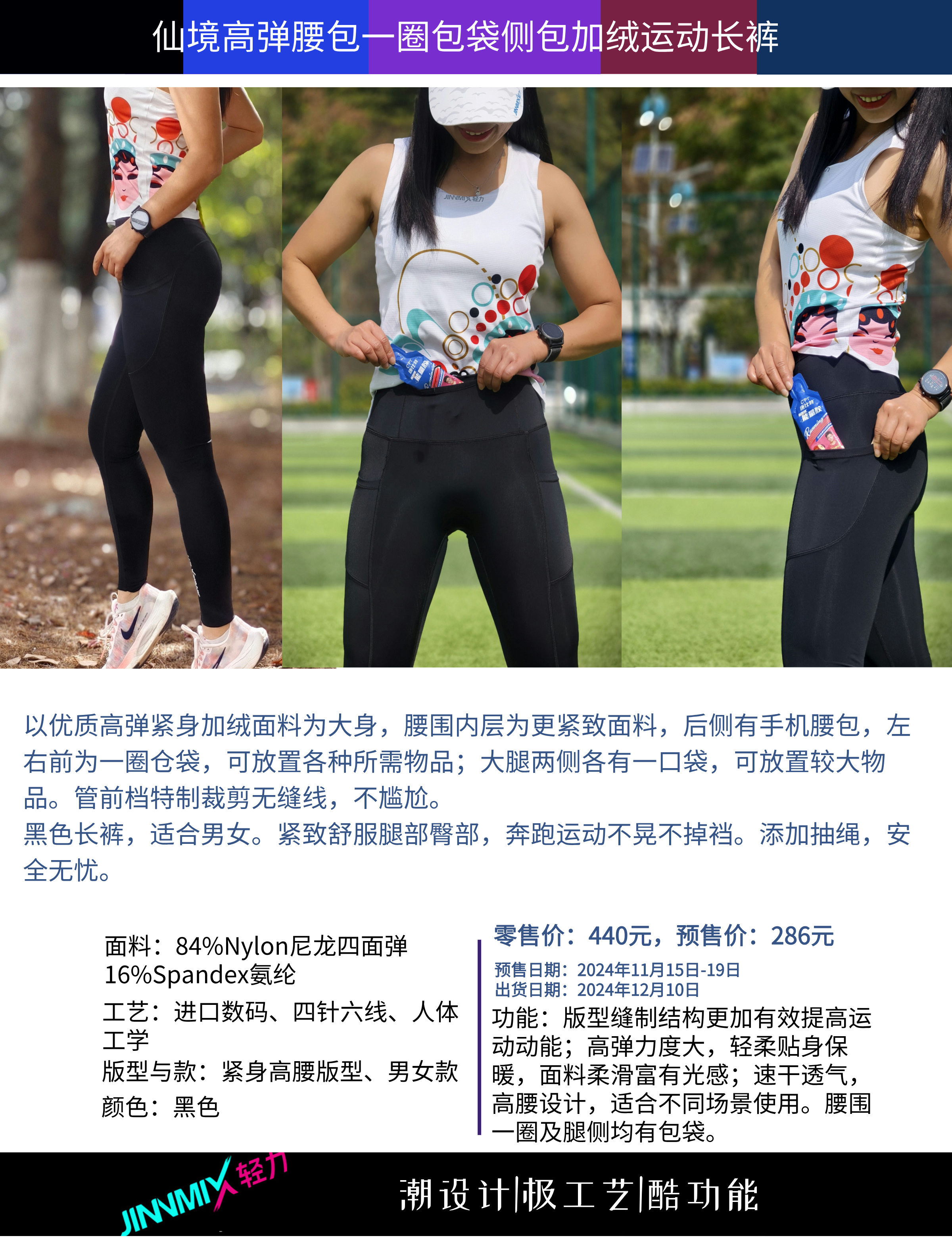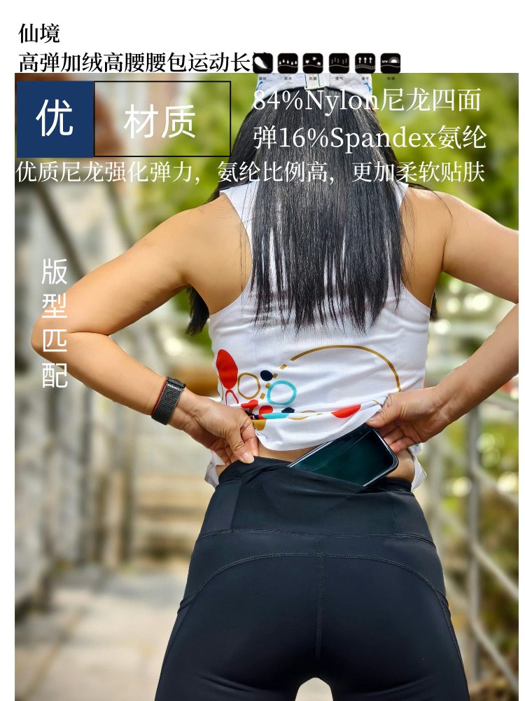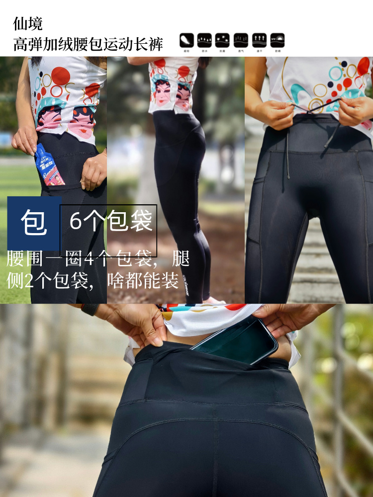仙境加绒高弹紧身腰包仓袋运动长裤