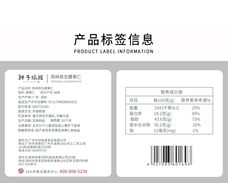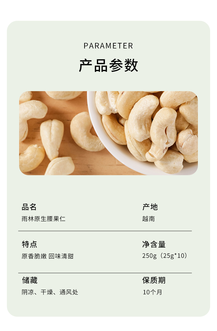 北纬纯净食品|38°越南原味生腰果仁不添加坚果零食送礼250g