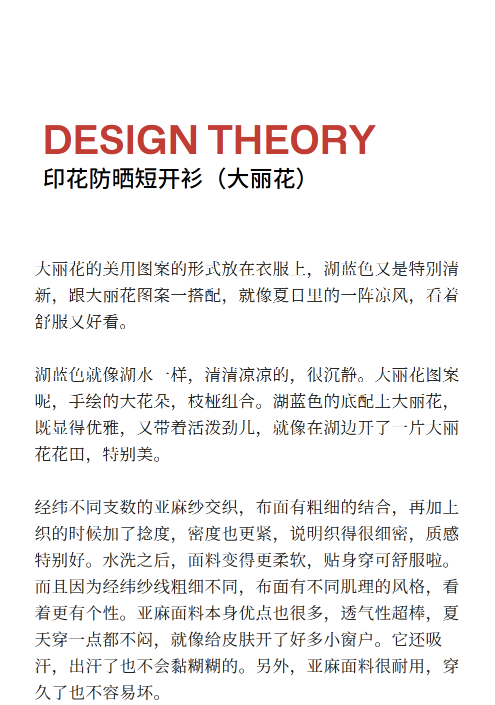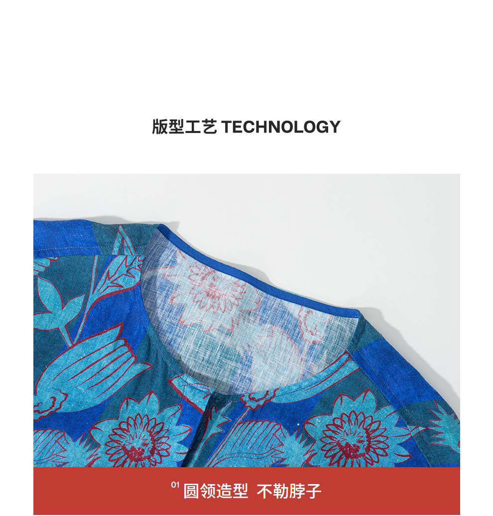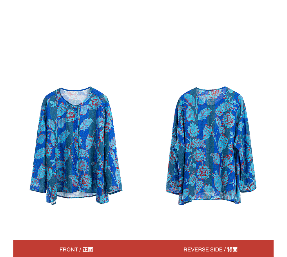绽放旅行女装285朵/大丽花印花防晒短开衫双支数细腻亚麻T恤上衣