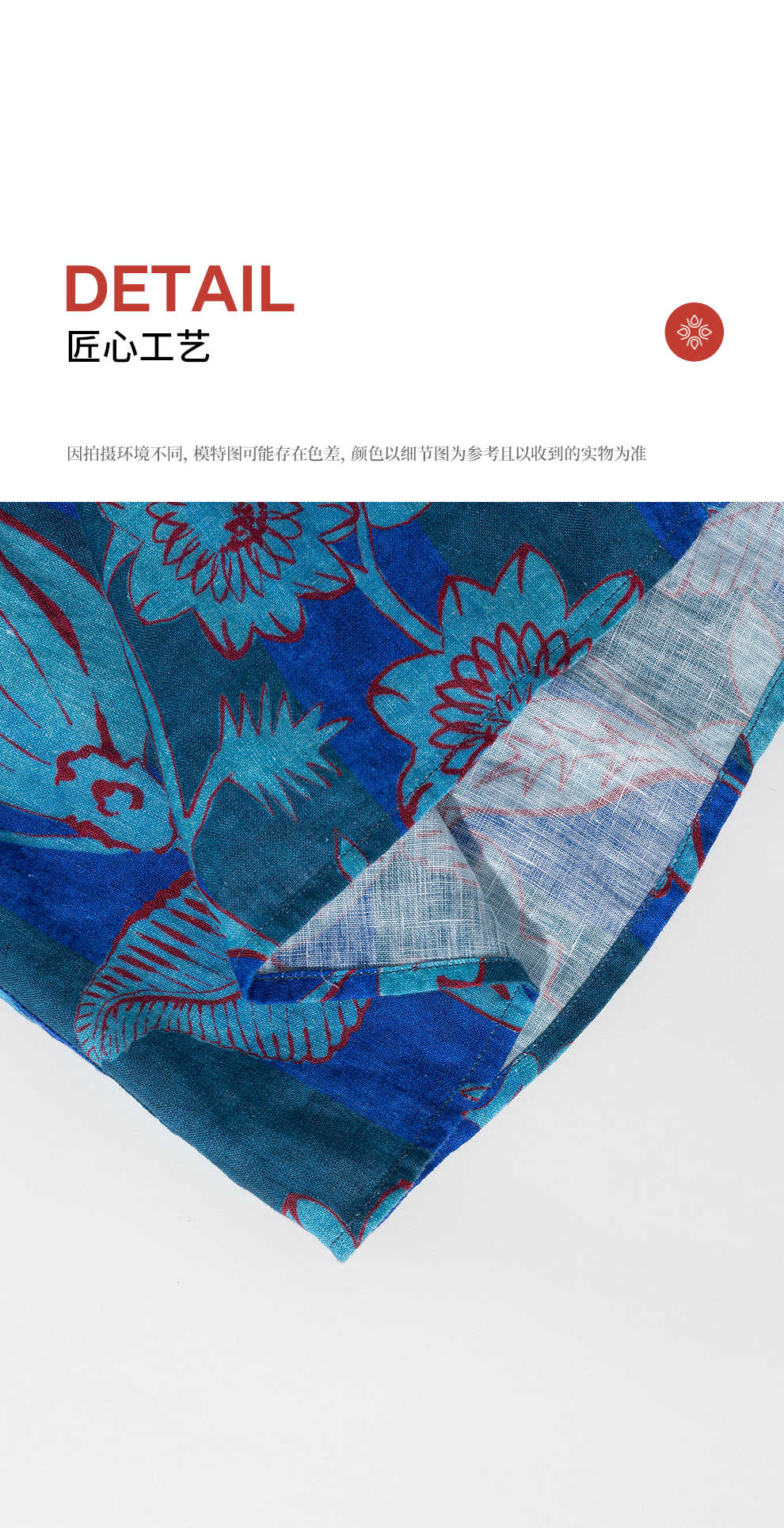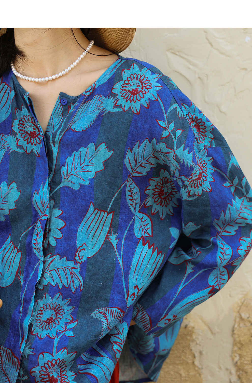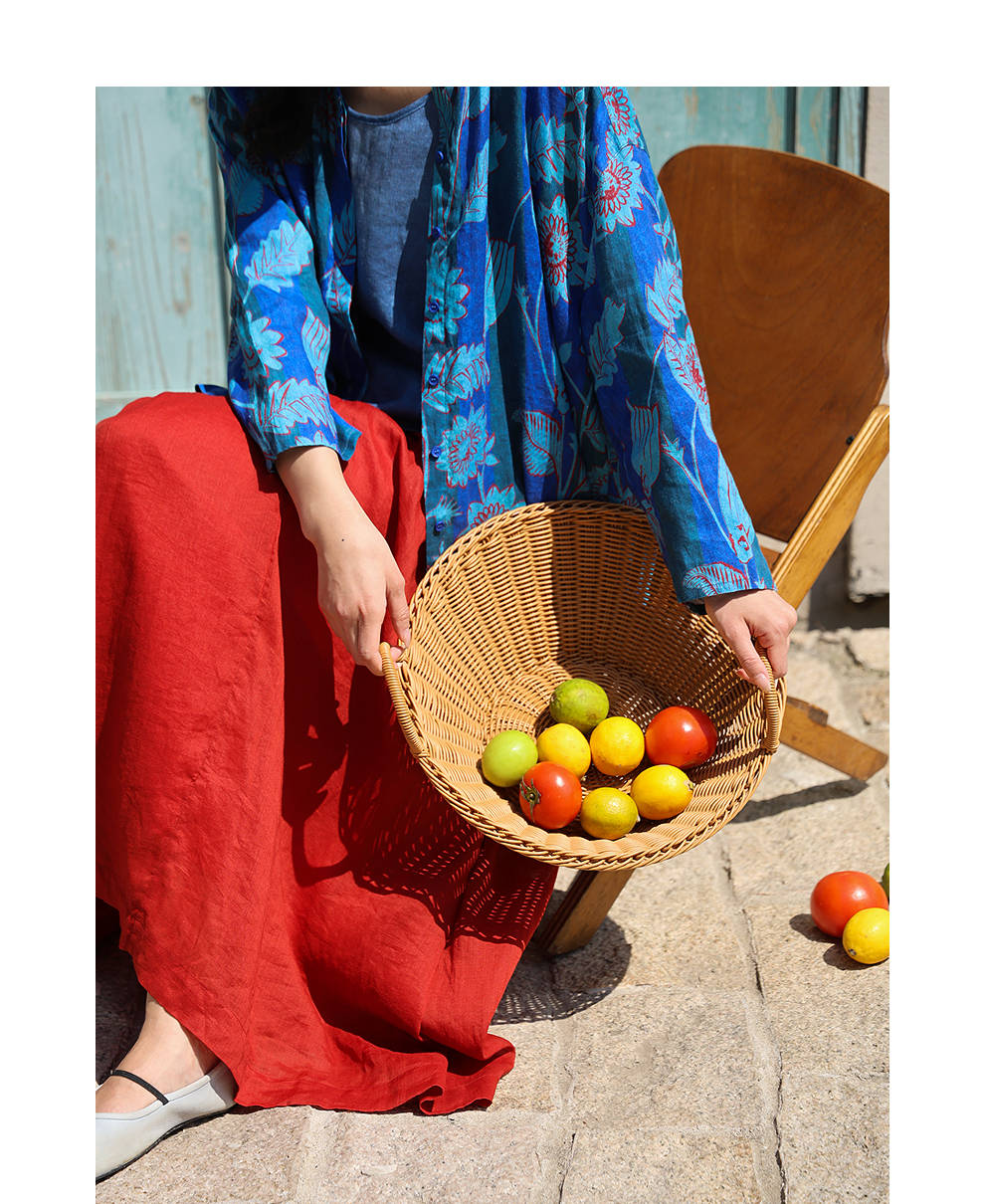 绽放旅行女装285朵/大丽花印花防晒短开衫双支数细腻亚麻T恤上衣