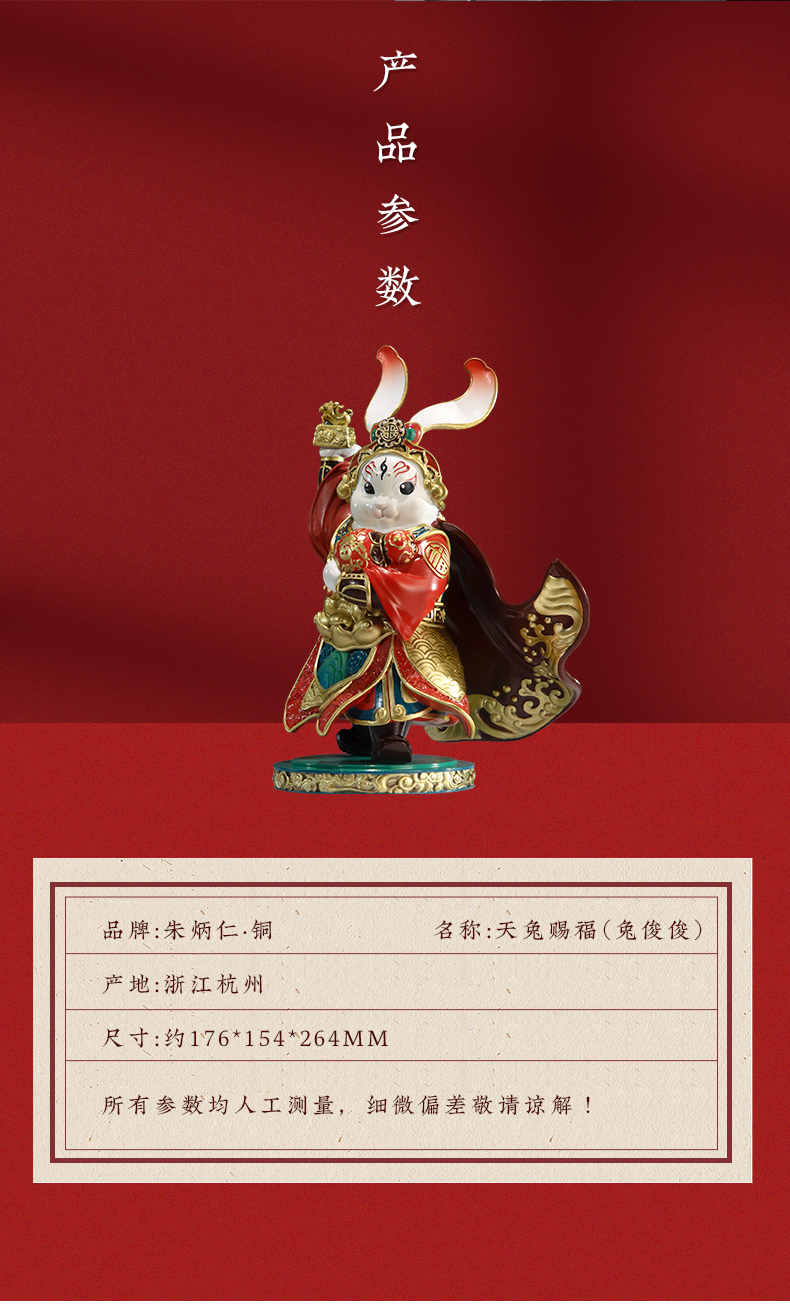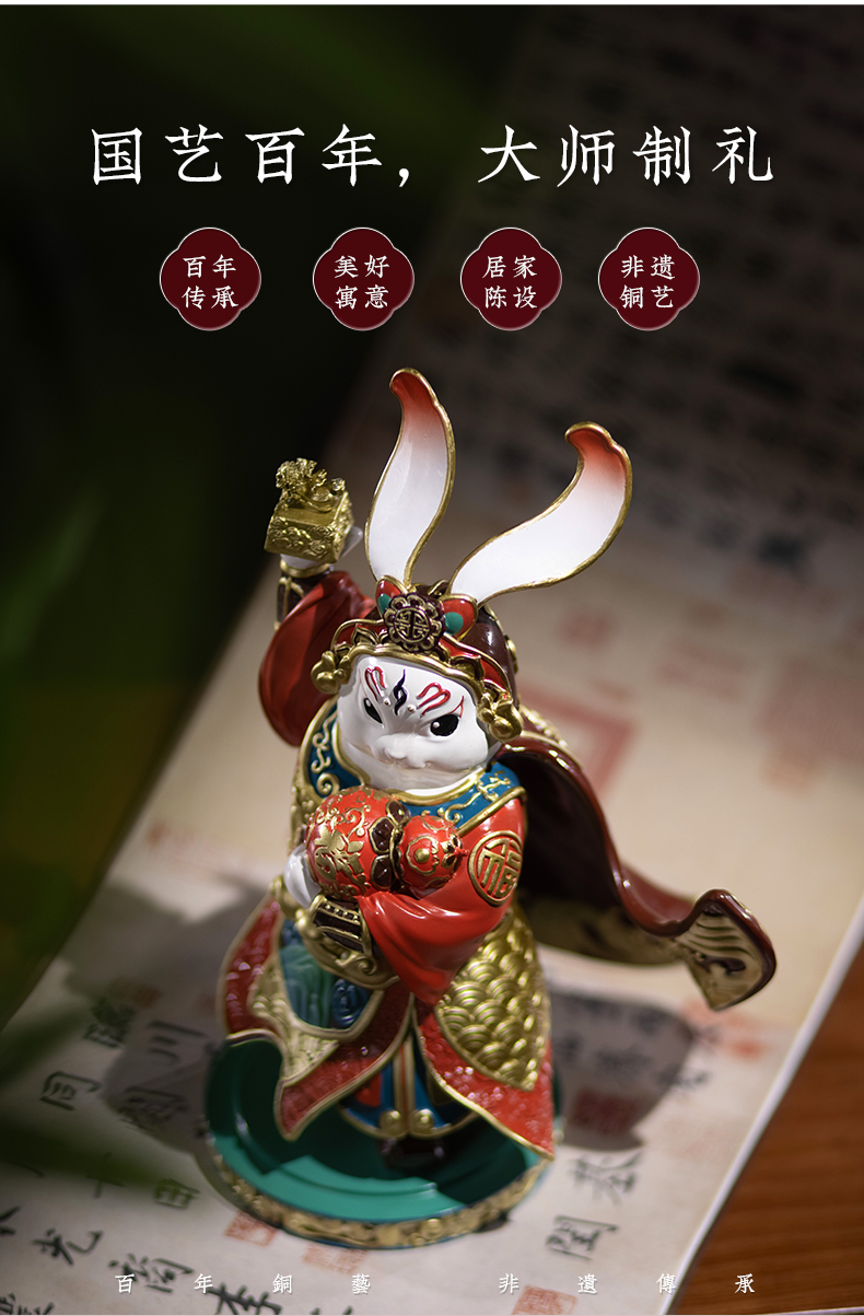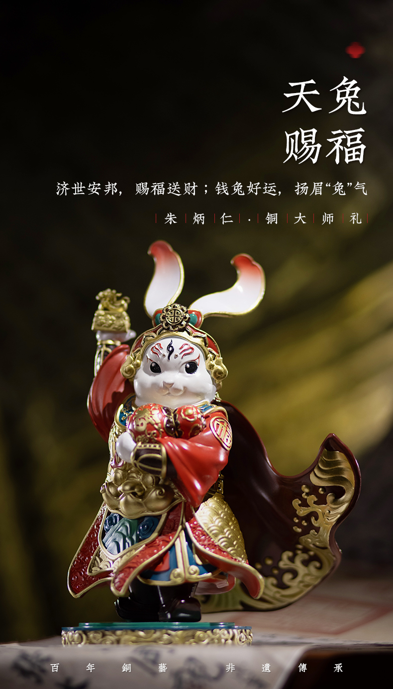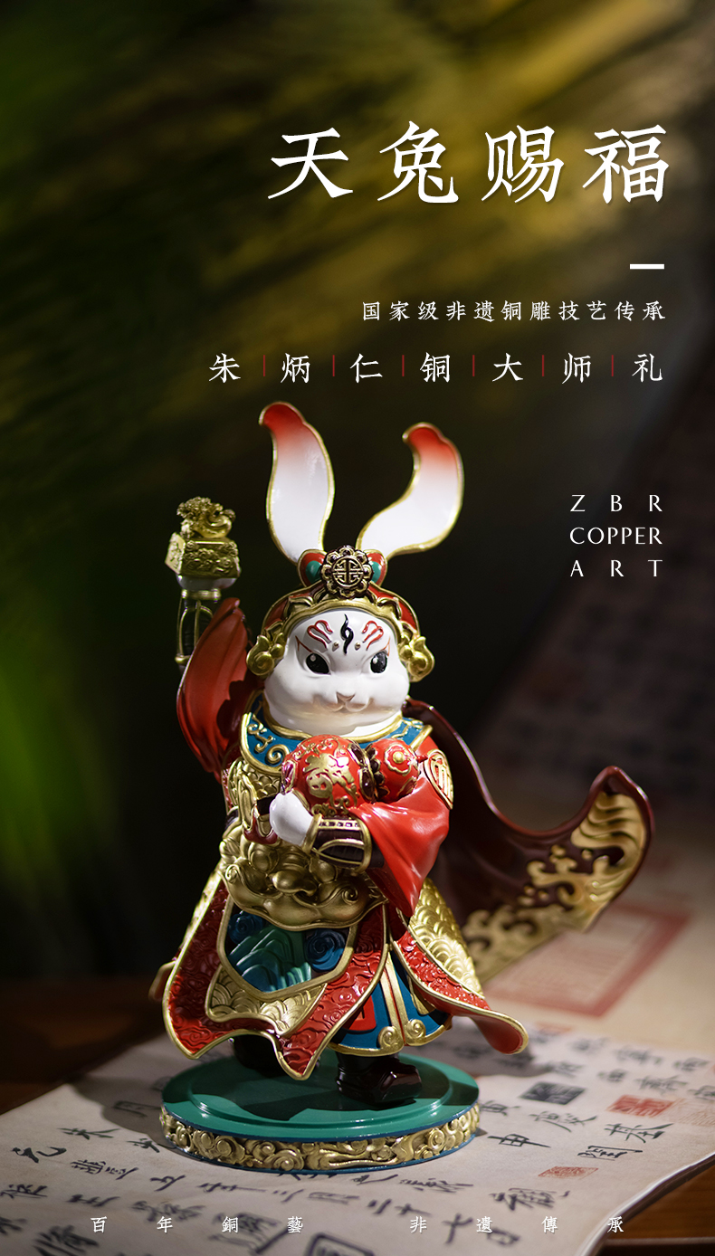 【6F】朱炳仁铜 天兔赐福(兔俊俊)创意铜雕萌宠家居饰品办公桌面摆件