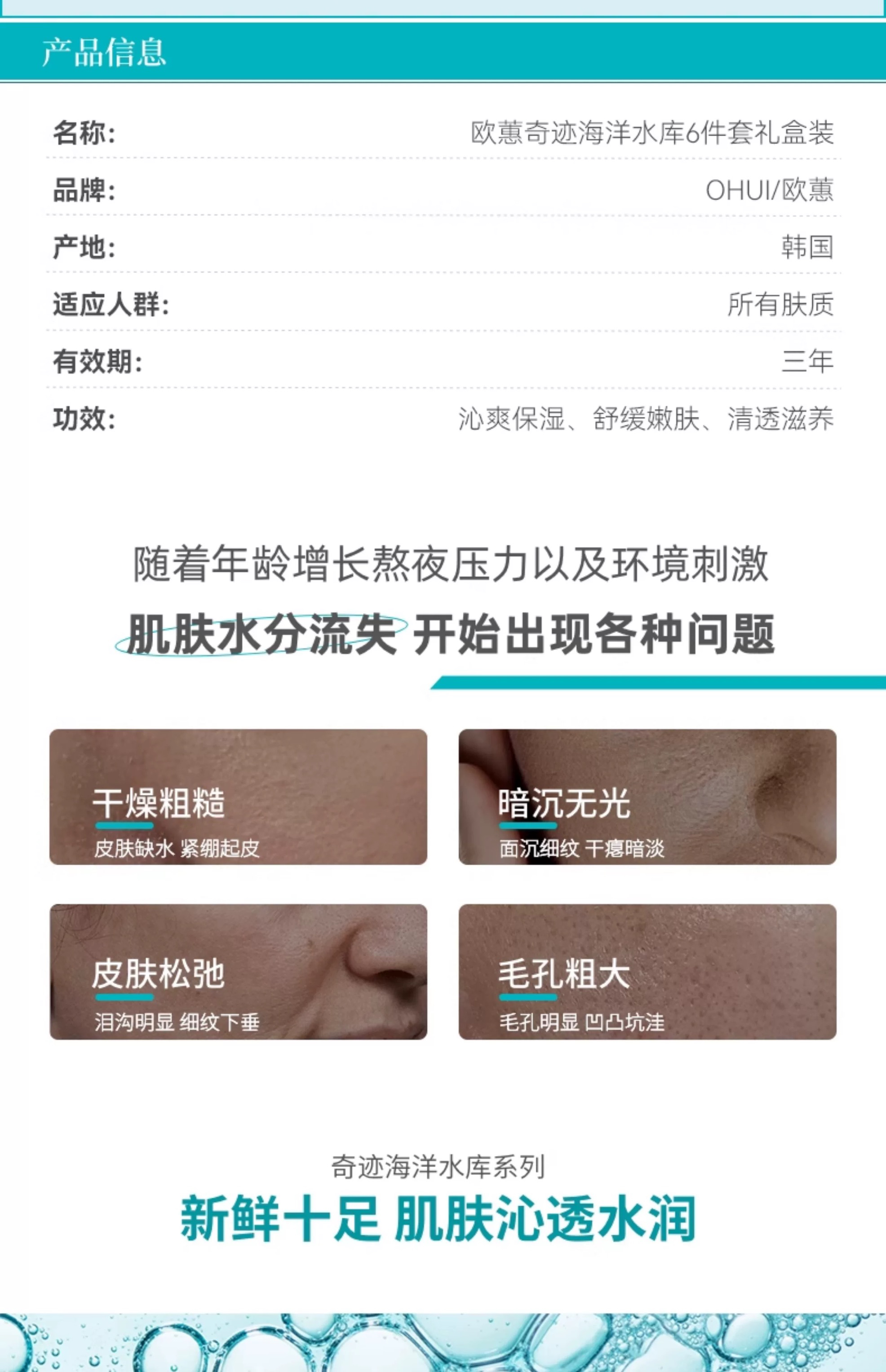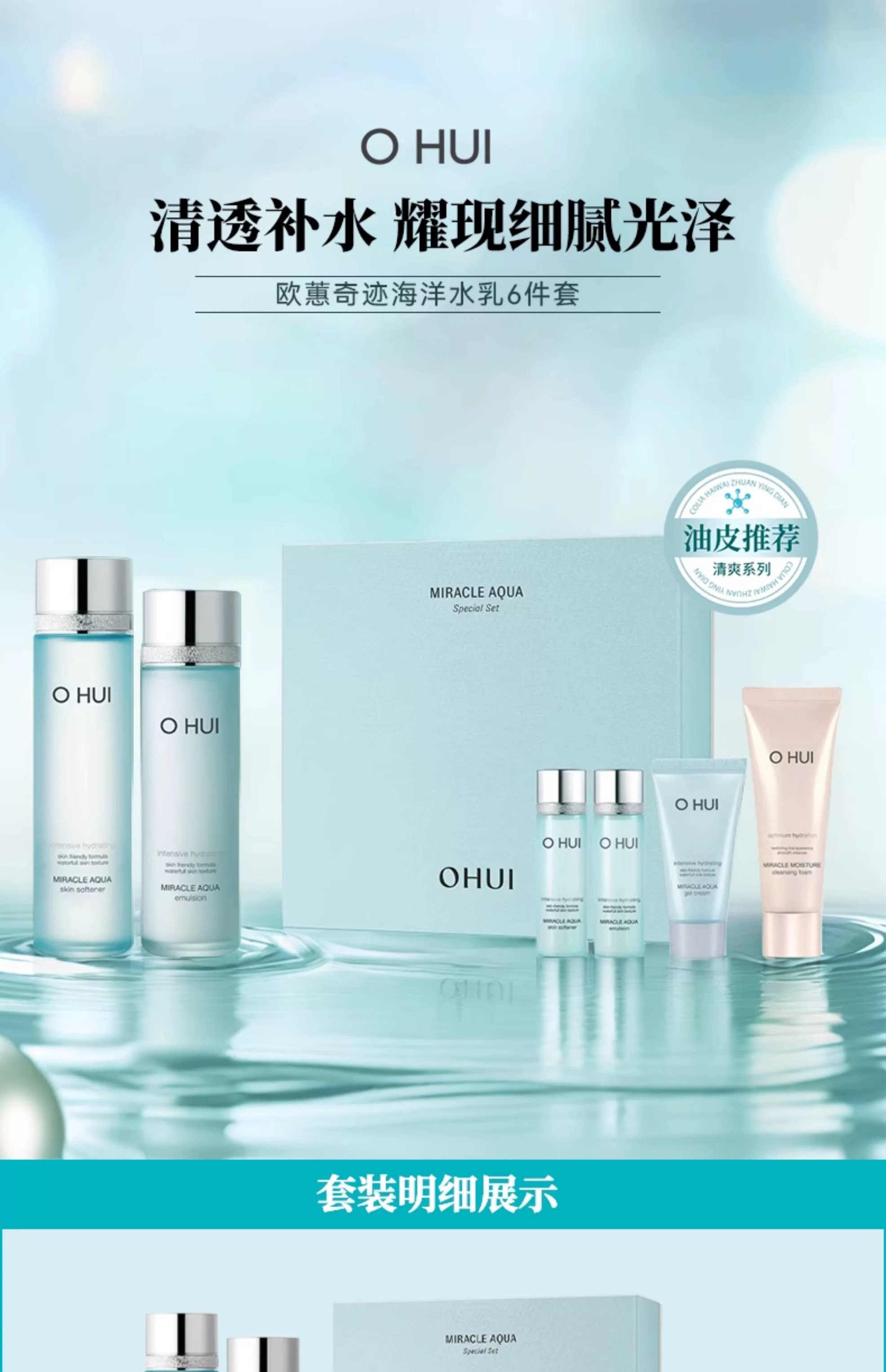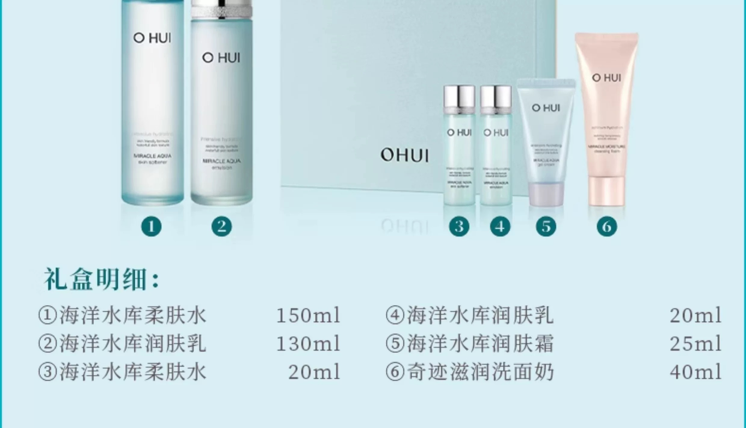 【深层补水】OHUI欧惠蓝色奇迹水库补水水乳套盒 水乳精华面霜套