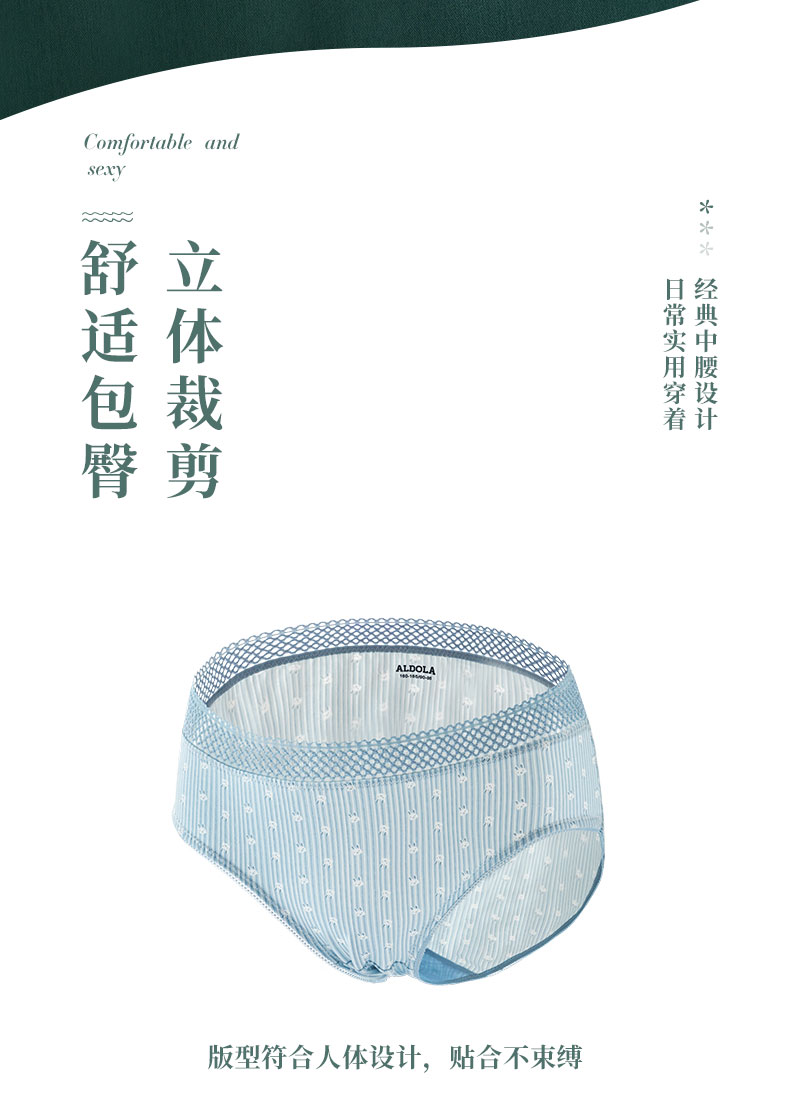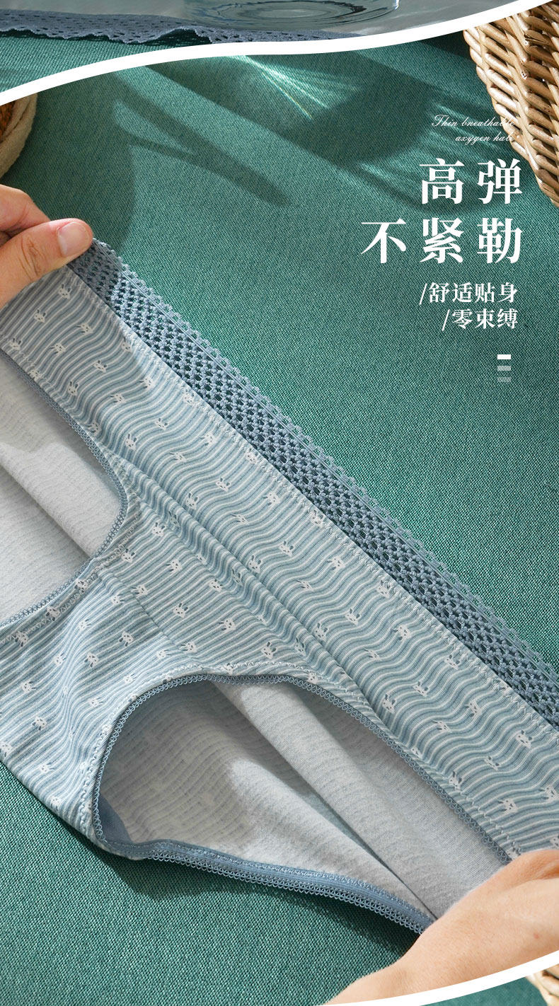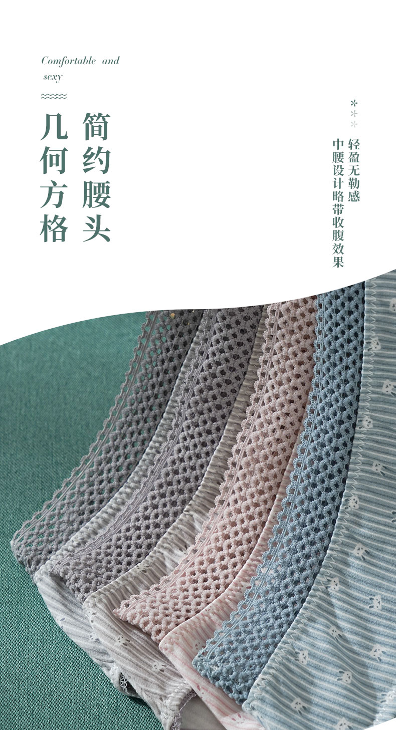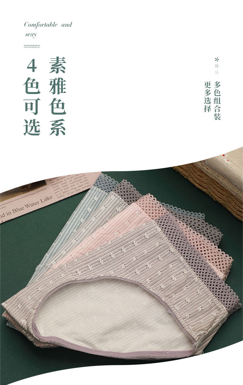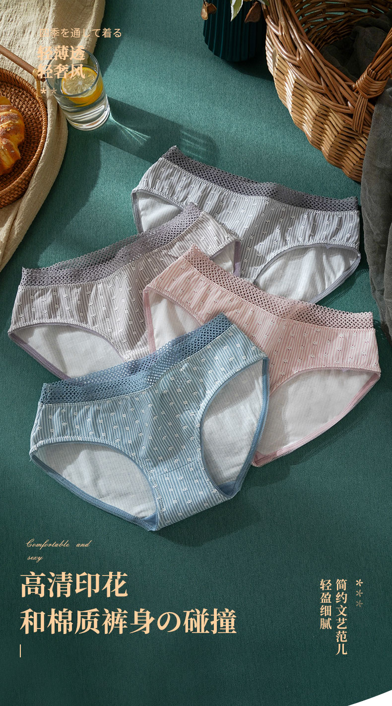 雅黛丽内裤女舒适中腰印花条纹蕾丝边纯棉裆部亲肤内裤4条混色装DYK03061(盒装)