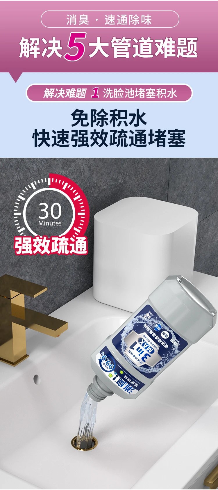 白倍极新升级管道疏通消臭凝胶