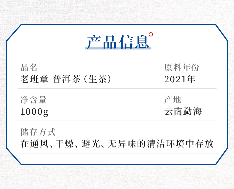 一品堂丨老班章 普洱生茶 2021年 1000g