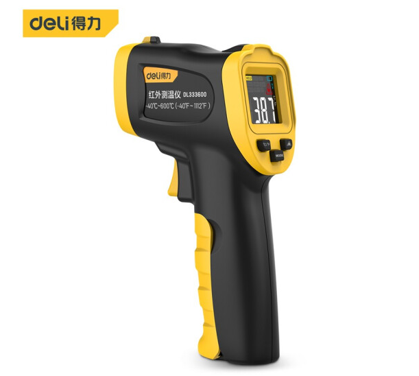 得力DL333600红外测温仪彩屏-40℃~600℃(黄)
