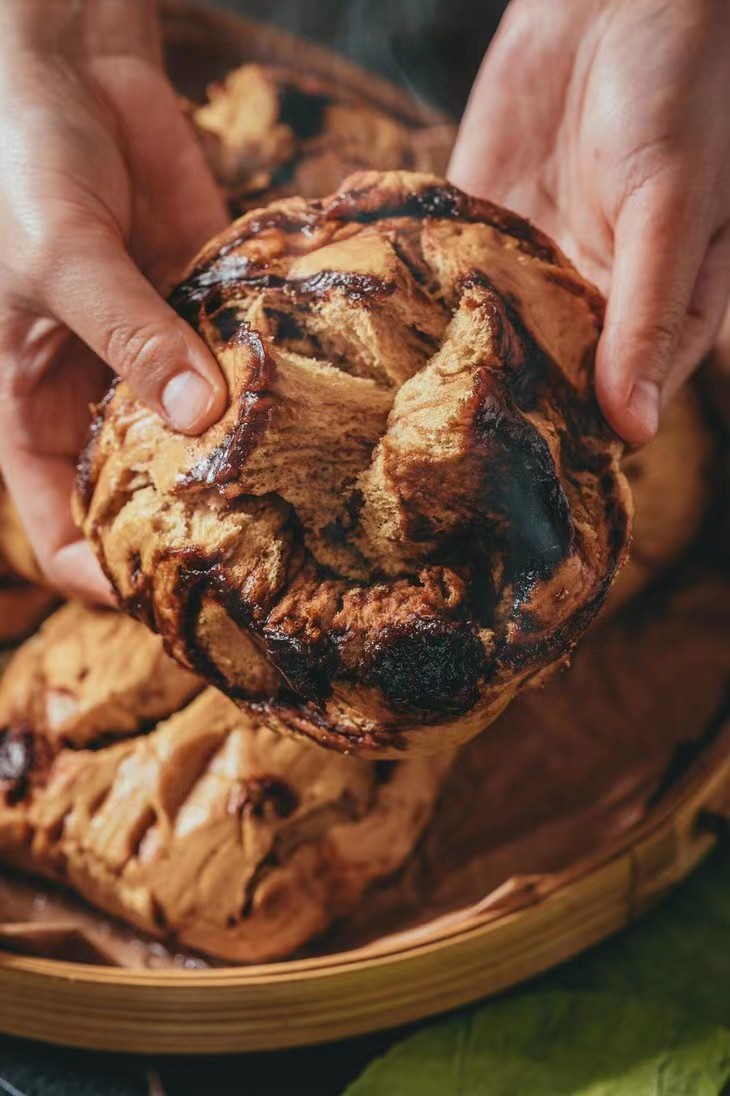 馒头有枣泥红糖口味和夹心红糖口味可选。枣泥红糖馒头是将和田红枣作为主要原料,去籽并手工耐心碾成枣泥,铺在面团上,枣香味特别浓郁,吃起来是淡淡的甜,细腻柔软,带有一定的嚼劲。而夹心红糖馒头,选用的是古法干红糖,红糖颗粒十分饱满,绵绵沙沙,夹杂在层层的馒头中,还能吃到老红糖的颗粒感,每一层都能看到,非常好吃!