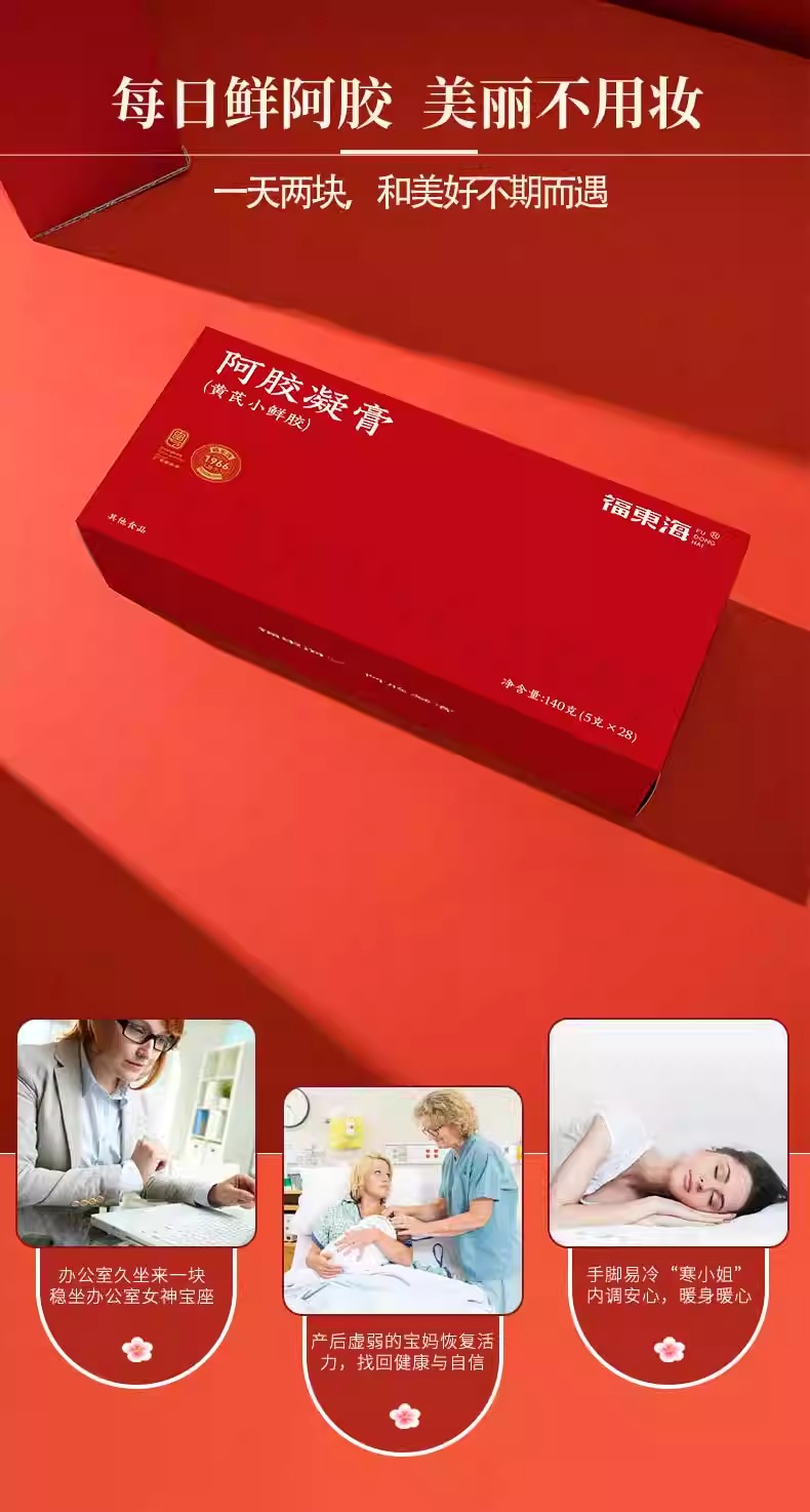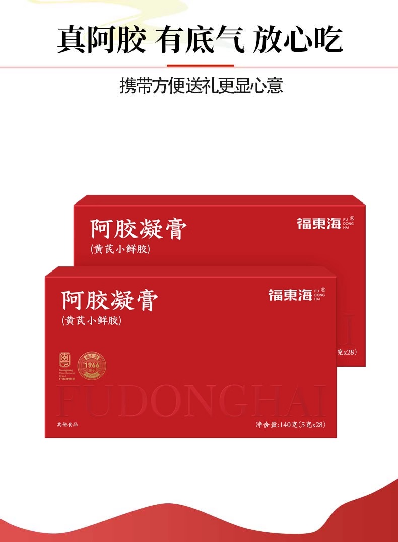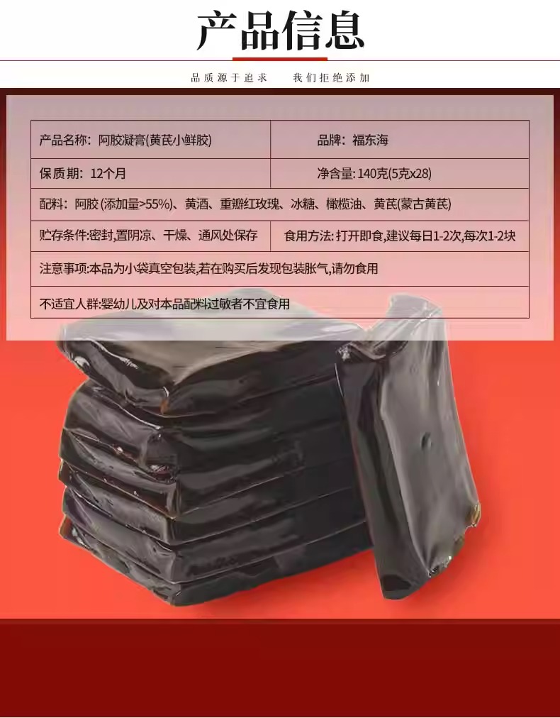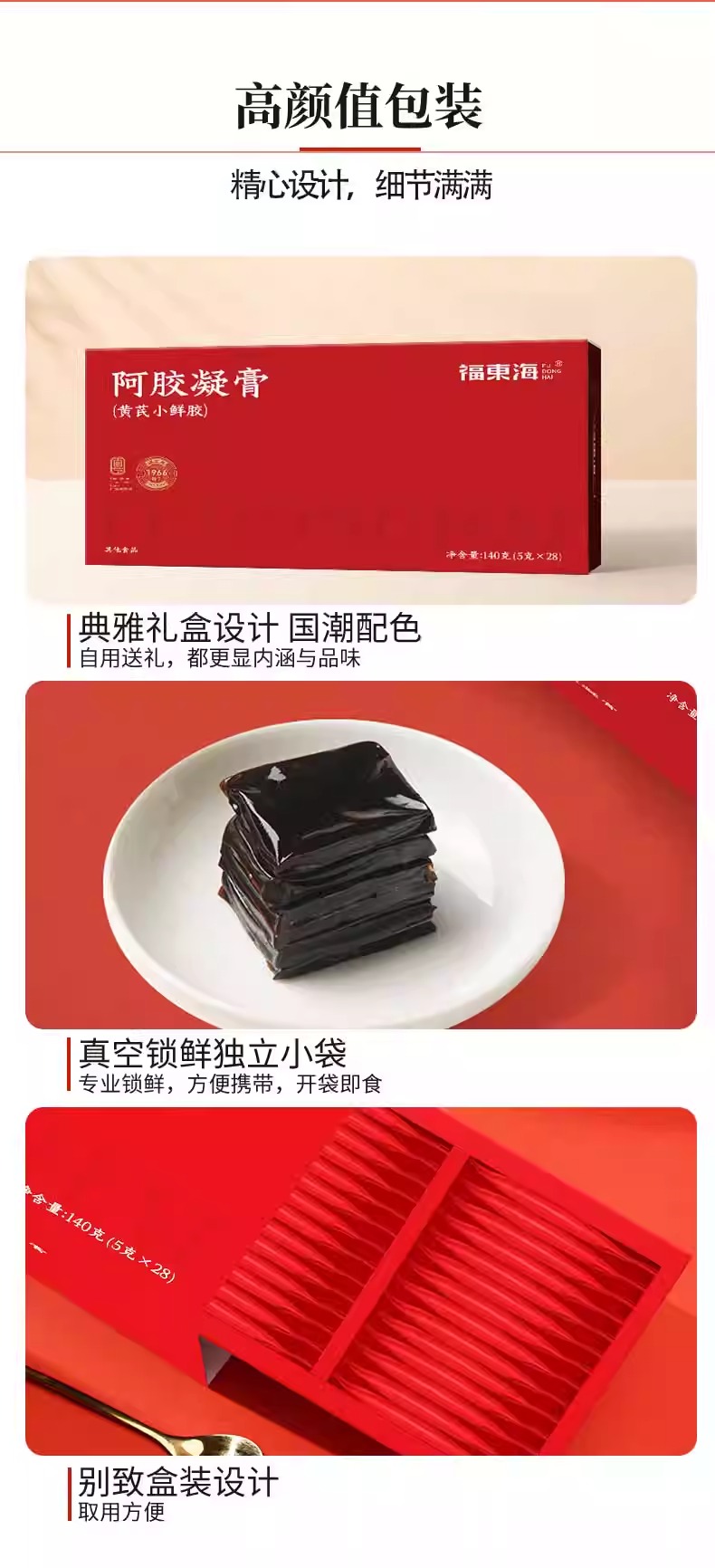 福东海 阿胶凝膏140克 添加阿胶≥55% 黄芪小鲜阿胶即食调养红阿胶片阿胶膏