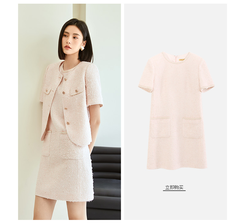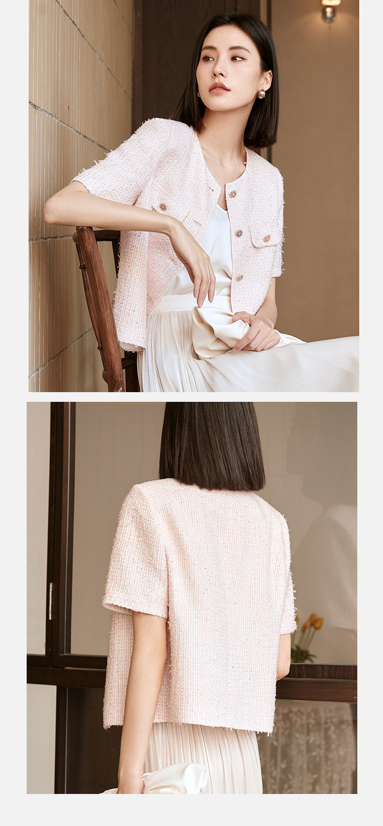 玳莎秋季小香风短袖外套女2023新款法式高级感长袖圆领夹克上衣 DC37101