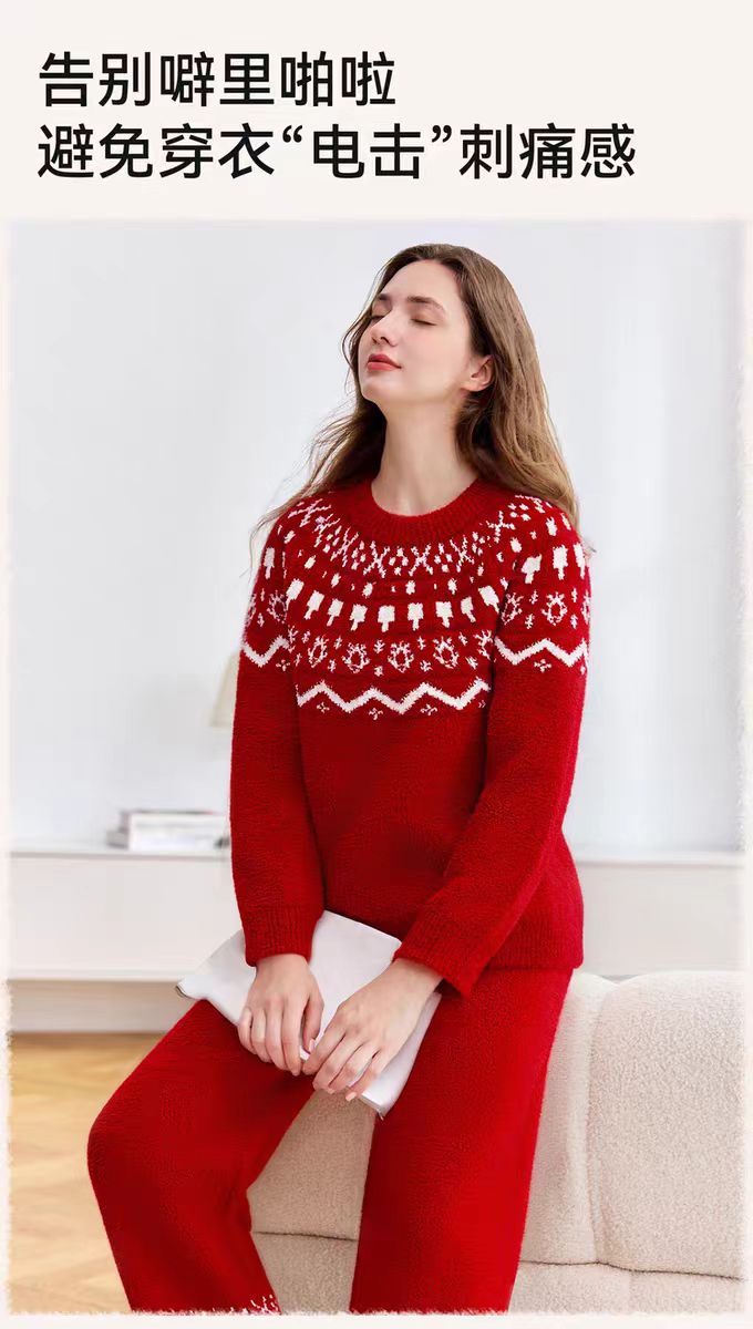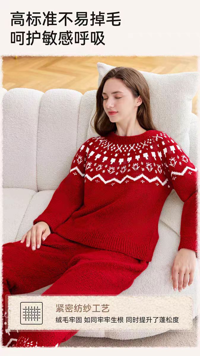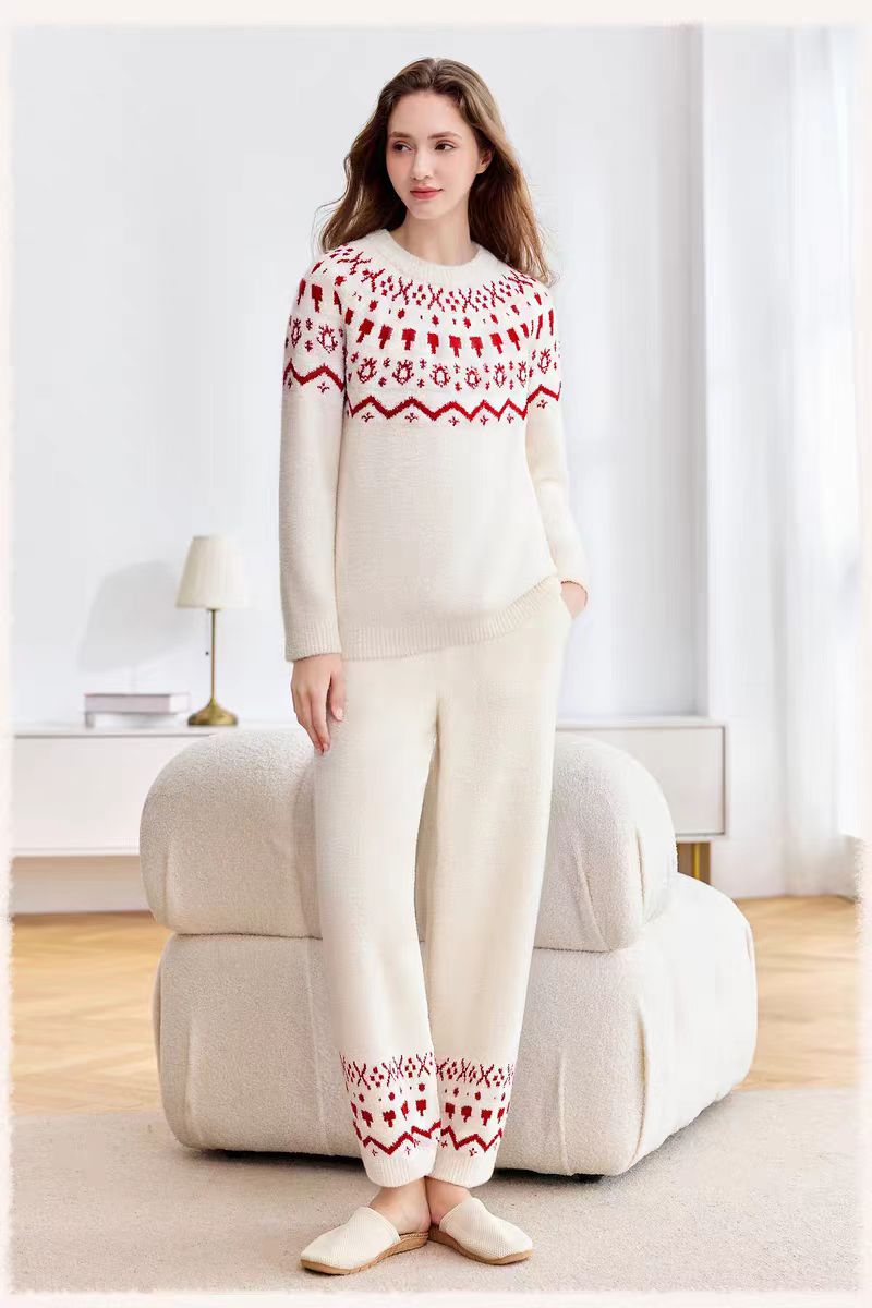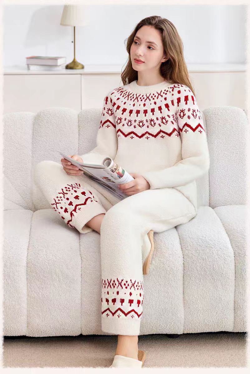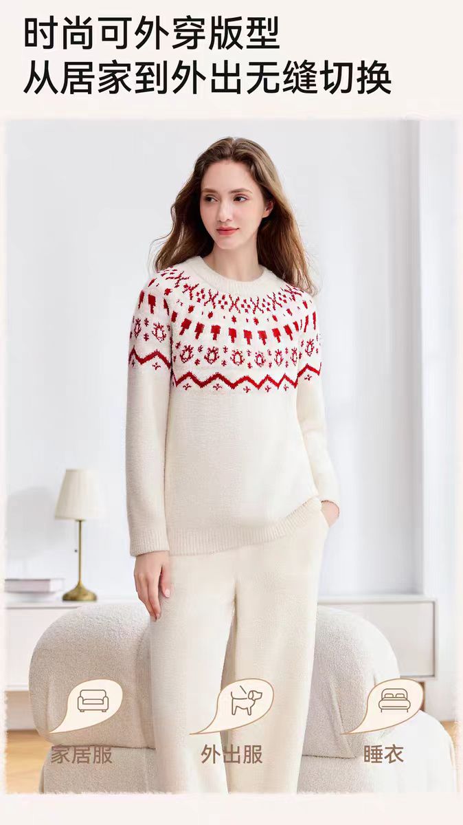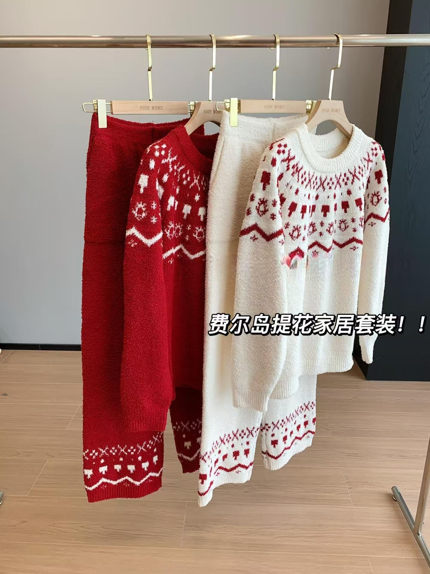 费尔岛提花家居服套装,房间暖气不足,南方房间湿冷超推荐。