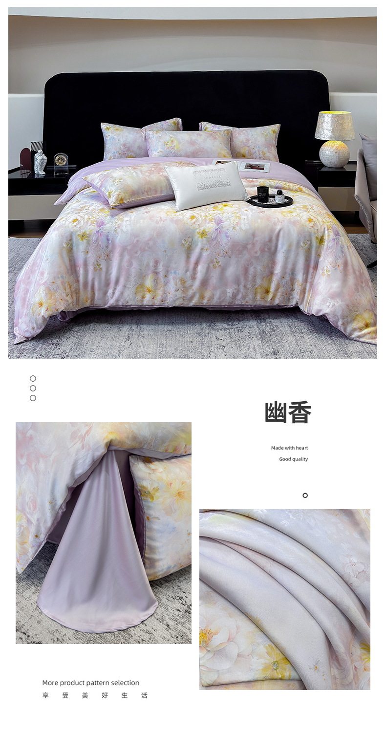 【品名】恒源祥高品质天丝四件套 中华老字号严选 奢华质感 数码印花 柔软亲肤 床单床笠款可选 【规格】繁花似锦、繁花挽风、和煦、花开寒影、锦秀、寻芳、探梅寻香、含羞待放、暖玉、清风抚林、幽香 【尺寸】 床单款:1.5m床适用、1.8m床适用 床笠款:1.5m床适用、1.8m床适用 【产地】国内 【材质】莱赛尔纤维 【发货包装】独立包装 【发货地】江苏 【发货快递】极兔、韵达、邮政随机发 【不发货区域】新疆、西藏、港澳台 【发货时效】48-72小时,周末节假日顺延 |